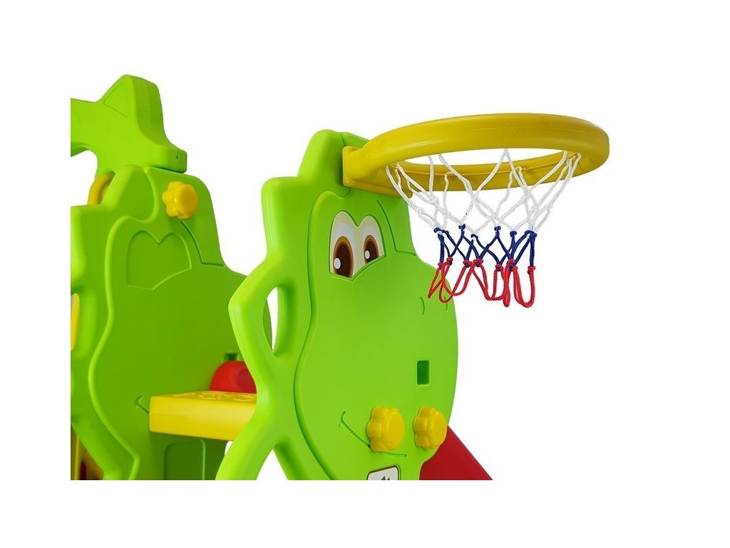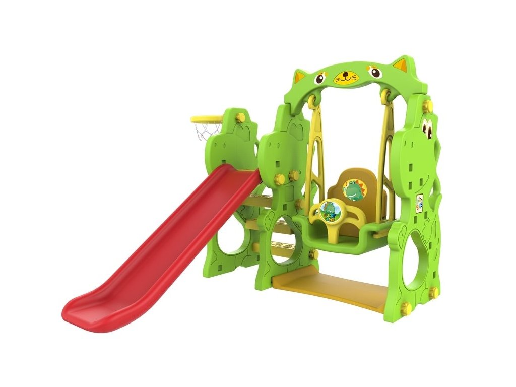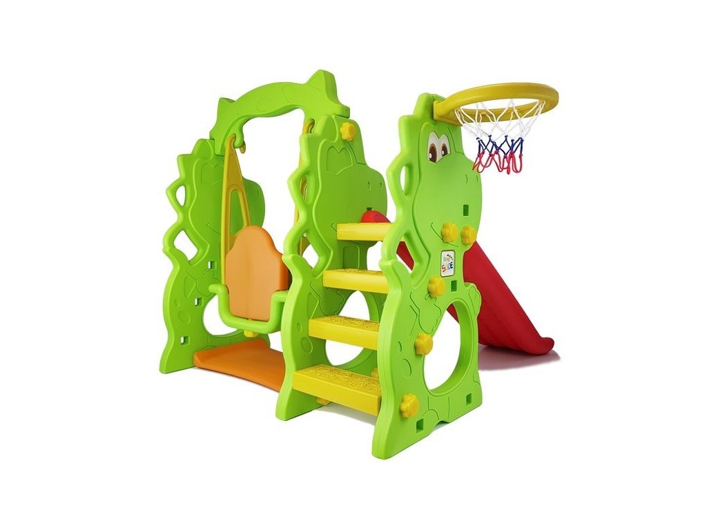 Sestava se skládá z houpačky, skluzavky a basketbalového koše. Tím že tento set kombinuje několik prvků dohromady, můžete poskytnout Vašim dětem spousty zábavy. Sestava lze složit dvěma způsoby, s košem po pravé nebo po levé straně. Skluzavku lze polohovat v závislosti na věku dítěte. Sestava je vhodná do interiéru i na zahradu.
