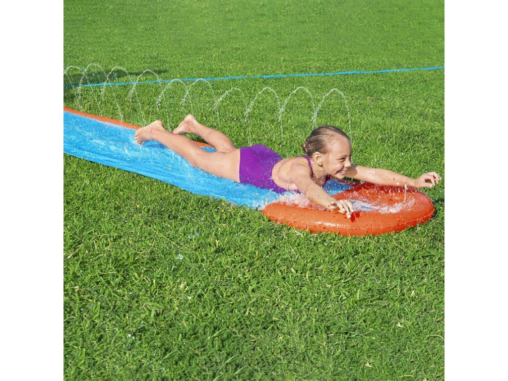 Vodní klouzačka H2OGO! je skvělá zábava na zahradě. Dítě se může klouzat střídavě se svými sourozenci a kamarády. Stačí připojit zahradní hadici ke skluzavce a užít si zábavu. Vestavěné sprinklery vytvářejí kaskádový efekt a udržují povrch dráhy kluzký. Určeno pro děti starší 3 let. Sada obsahuje také opravnou záplatu.Technické parametry: