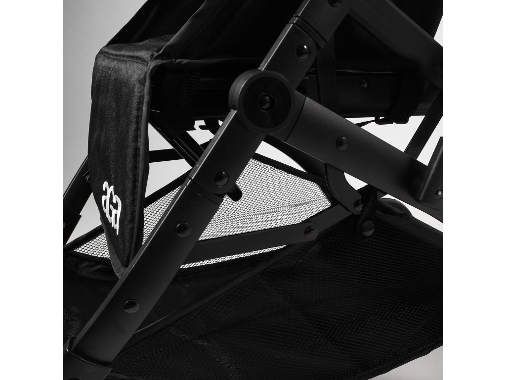 Kočárek je postaven na pevném a lehkém hliníkovém rámu, který zajišťuje dlouhou životnost a odolnost. Tento rám je navržen tak, aby poskytoval maximální stabilitu a zároveň byl snadno ovladatelný.
