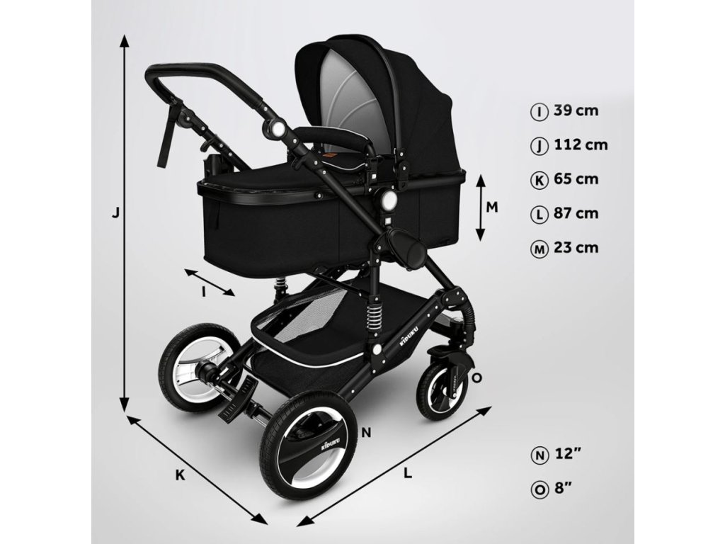 Kiduku Kombinovaný kočárek 3v1 Černý/Černý