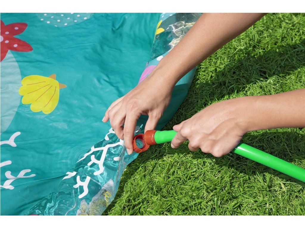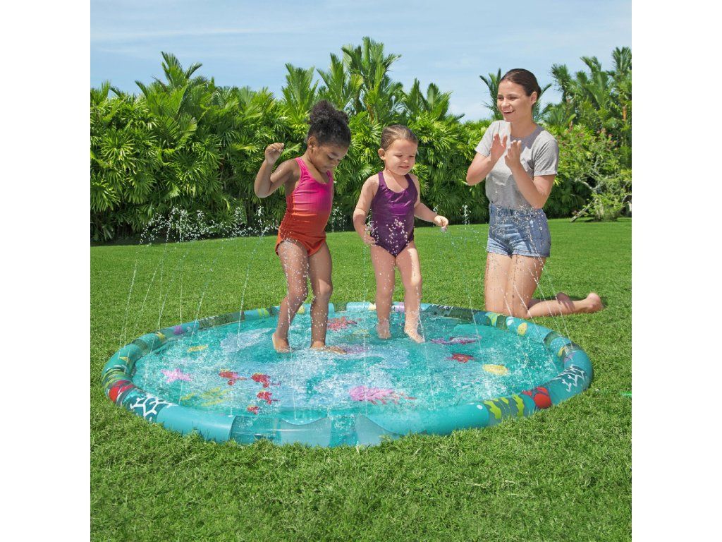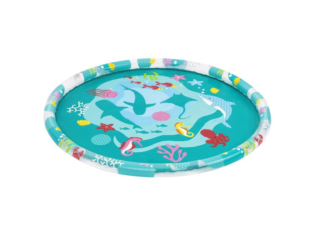 Nafukovací brouzdaliště s vodotryskem jistě přinese vašim dětem spoustu zábavy v letních dnech. Vodní podložka s postřikovačem má nafukovací lem, ve kterém se zadržuje voda. Veselý potisk zobrazující mořský život navíc povzbudí ty nejmladší ke společné hře. Rychle sestavitelné brouzdaliště nezabere při skladování mimo sezónu mnoho místa. Podložka je určena pro děti od 2 let.Technické parametry: