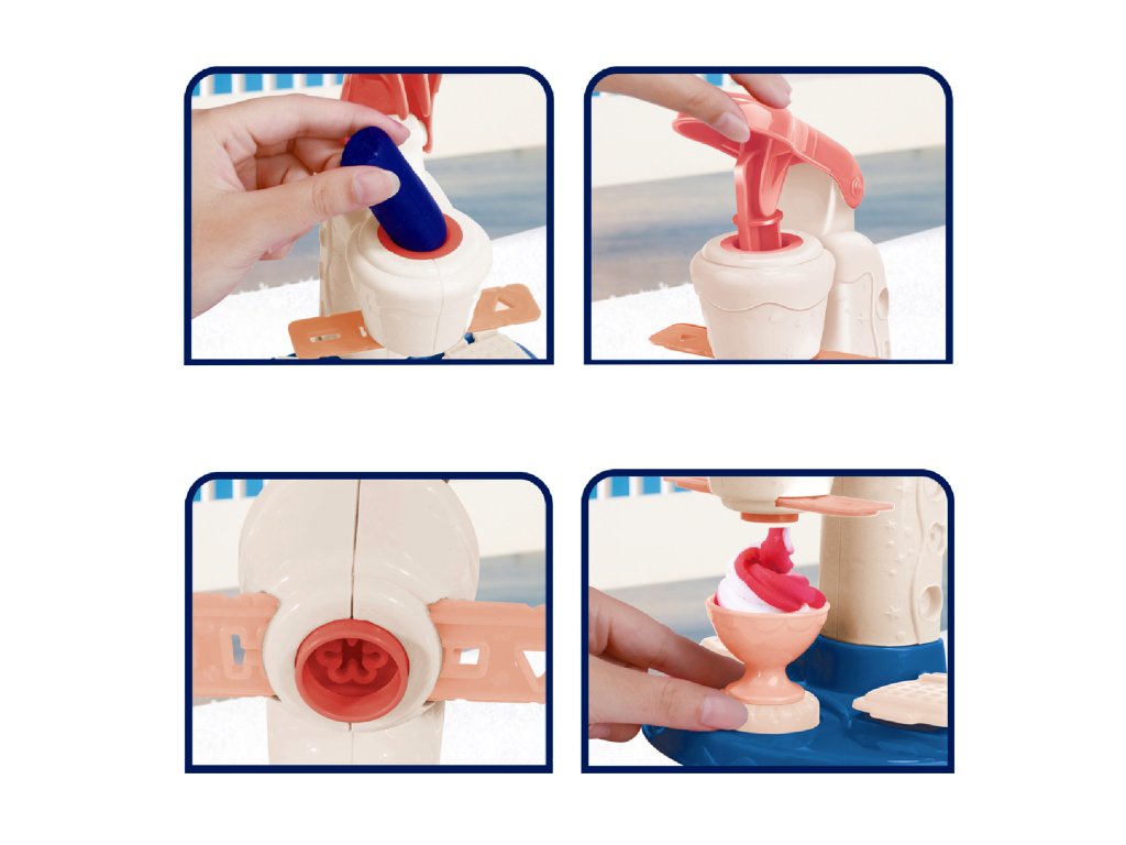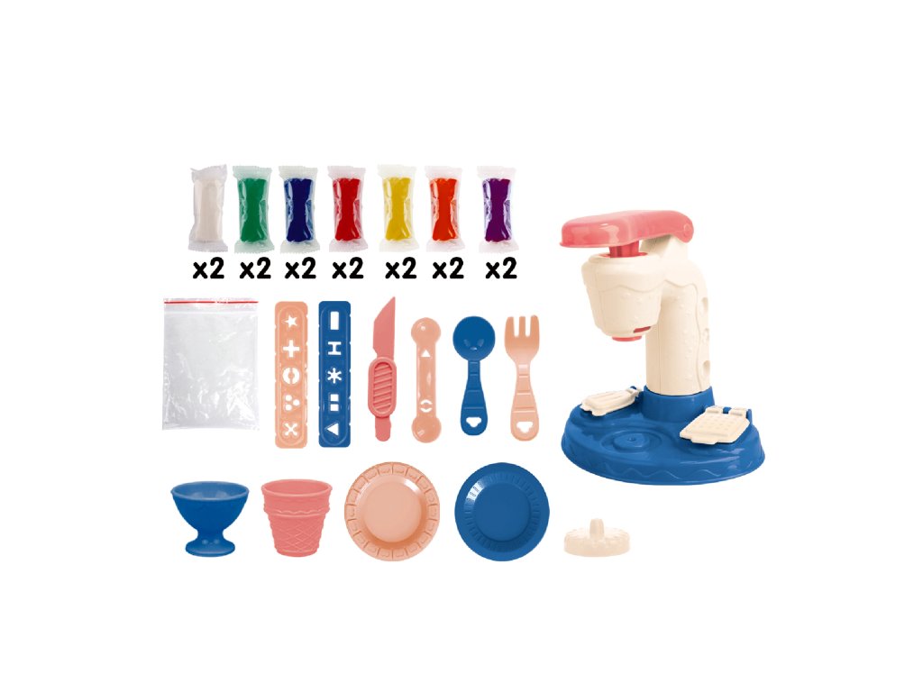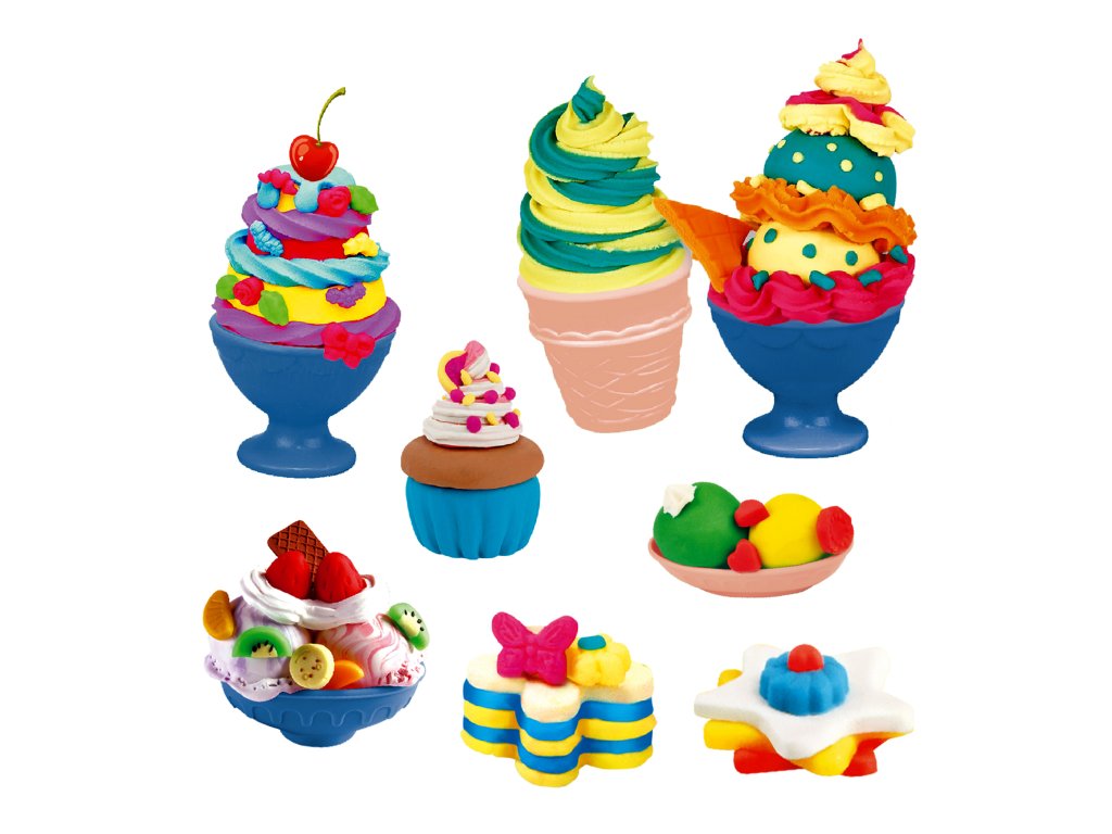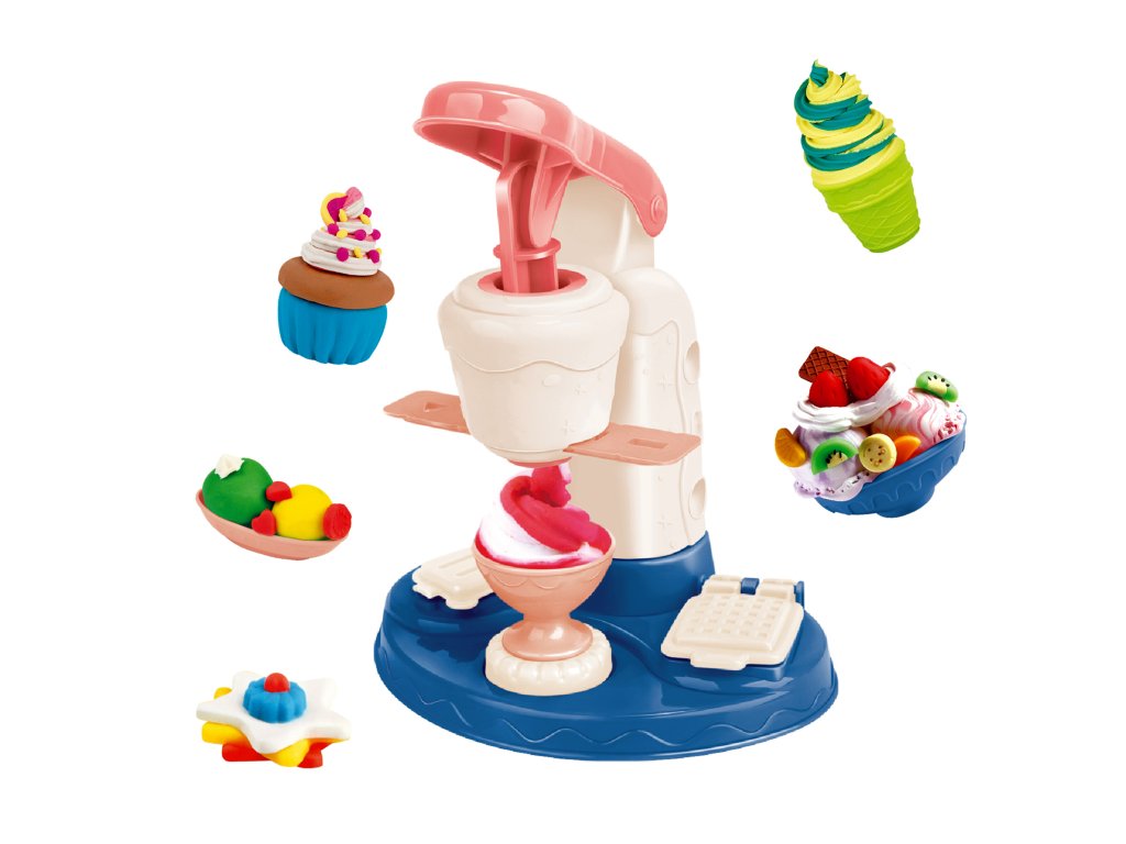 Stroj na výrobu zákusků, dortů a zmrzliny z plastelíny je skvělou zábavou pro rozvoj manuální zručnosti, kreativního myšlení a fantazie dítěte.