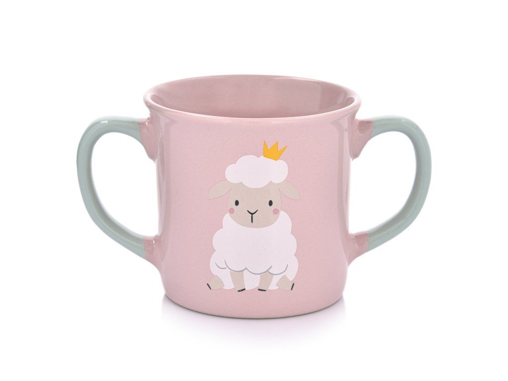 Roztomilý růžový hrnek s motivem ovečky bude skvělou volbou pro vaše nejmenší. Je vyrobený z pevné kameniny (keramiky), odolné vůči každodennímu používání, zaujme nejen svou funkčností, ale i jedinečným designem. Pastelové barvy a zvířecí grafika přinášejí do dětského světa radost a estetiku. Díky dvěma ergonomickým ouškům se hrnek pohodlně drží i v malých ručičkách, což pomáhá učit se samostatnosti. Je ideální na snídaně, obědy, ale i na pikniky a do školky. Není to jen praktický kus nádobí, ale také krásný prvek dětského stolování.