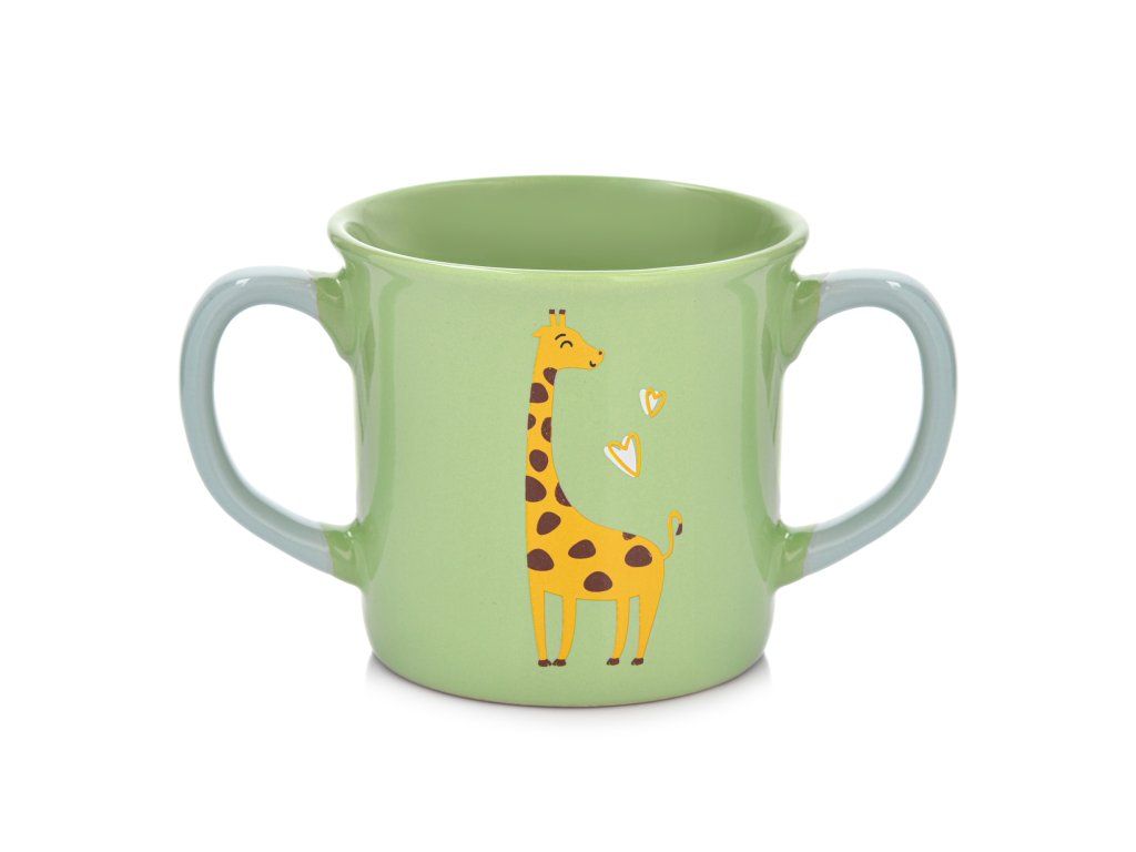 Krásný hrnek s motivem roztomilé žirafy je nezbytným doplňkem každého malého dítěte. Je vyrobený z pevné kameniny (keramiky), odolné vůči každodennímu používání, zaujme nejen svou funkčností, ale i jedinečným designem. Pastelové barvy a zvířecí grafika přinášejí do dětského světa radost a estetiku. Díky dvěma ergonomickým ouškům se hrnek pohodlně drží i v malých ručičkách, což pomáhá učit se samostatnosti. Je ideální na snídaně, obědy, ale i na pikniky a do školky. Není to jen praktický kus nádobí, ale také krásný prvek dětského stolování.