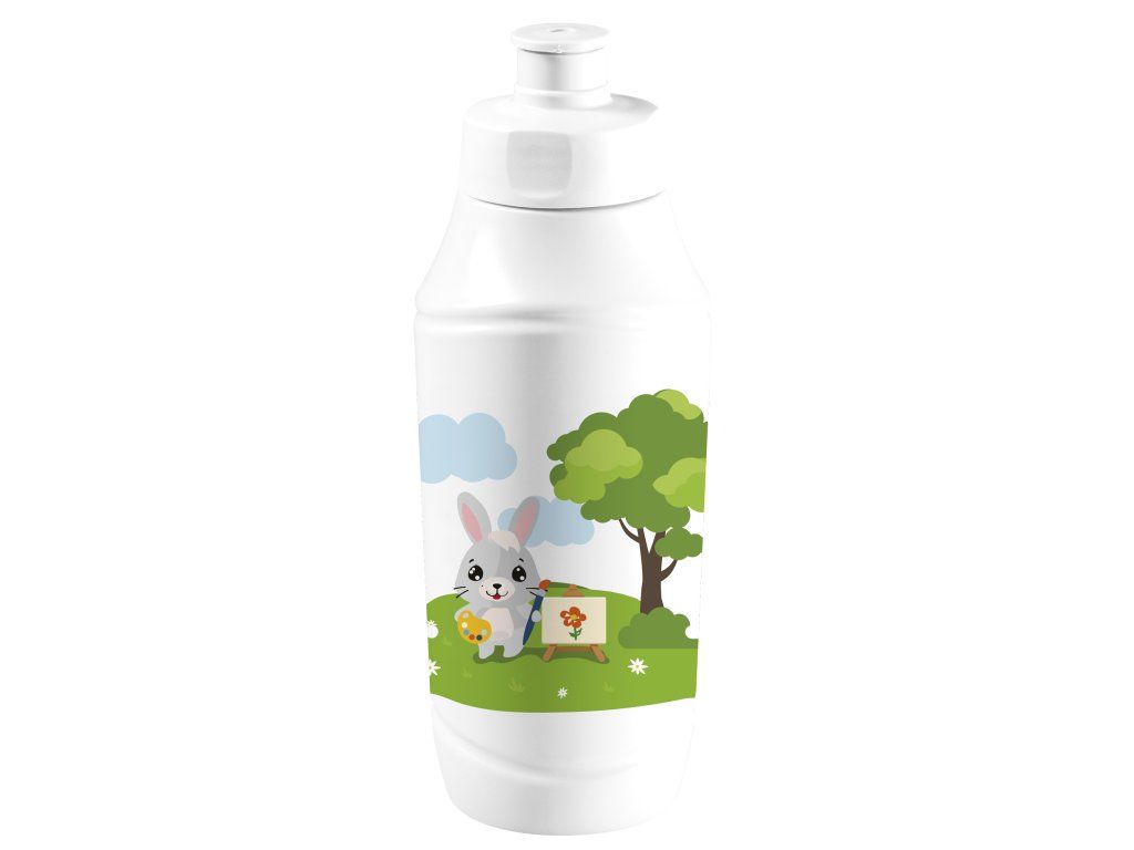 Láhev na vodu s motivem králíčka je ideálním řešením pro pitný režim dětí ať již při hře nebo ve škole. Rozkošný design se králíčkem povzbuzuje nejmenší k pravidelné hydrataci a díky praktickému designu láhev perfektně padne do malých rukou. Lahev je vybavená praktickým náustkem na pití a těsný uzávěr zajišťuje bezpečné a pohodlné použití bez rizika rozlití. Láhev je lehká a skladná, je vhodná na procházky, do školky či školy a také na výlety.