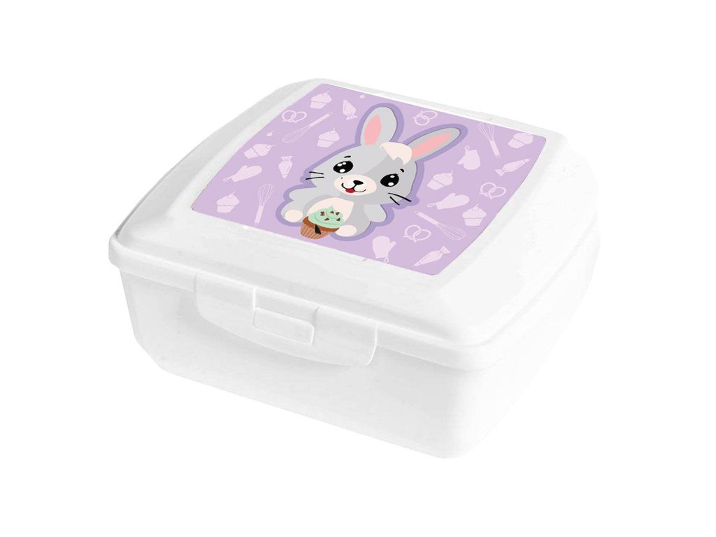 Box na svačinu či oběd s motivem roztomilého králíka s muffinem je dokonalým řešením pro transport občerstvení. Vybízí k jídlu ve škole i na výletech. Lunchbox je vyrobený z bezpečných a odolných materiálů, dokonale ochrání pokrmy, ať už se jedná o sendviče, ovoce nebo jiné svačiny. Díky snadnému čištění a hygienickým vlastnostem je praktickou volbou jak do školy tak na výlety.