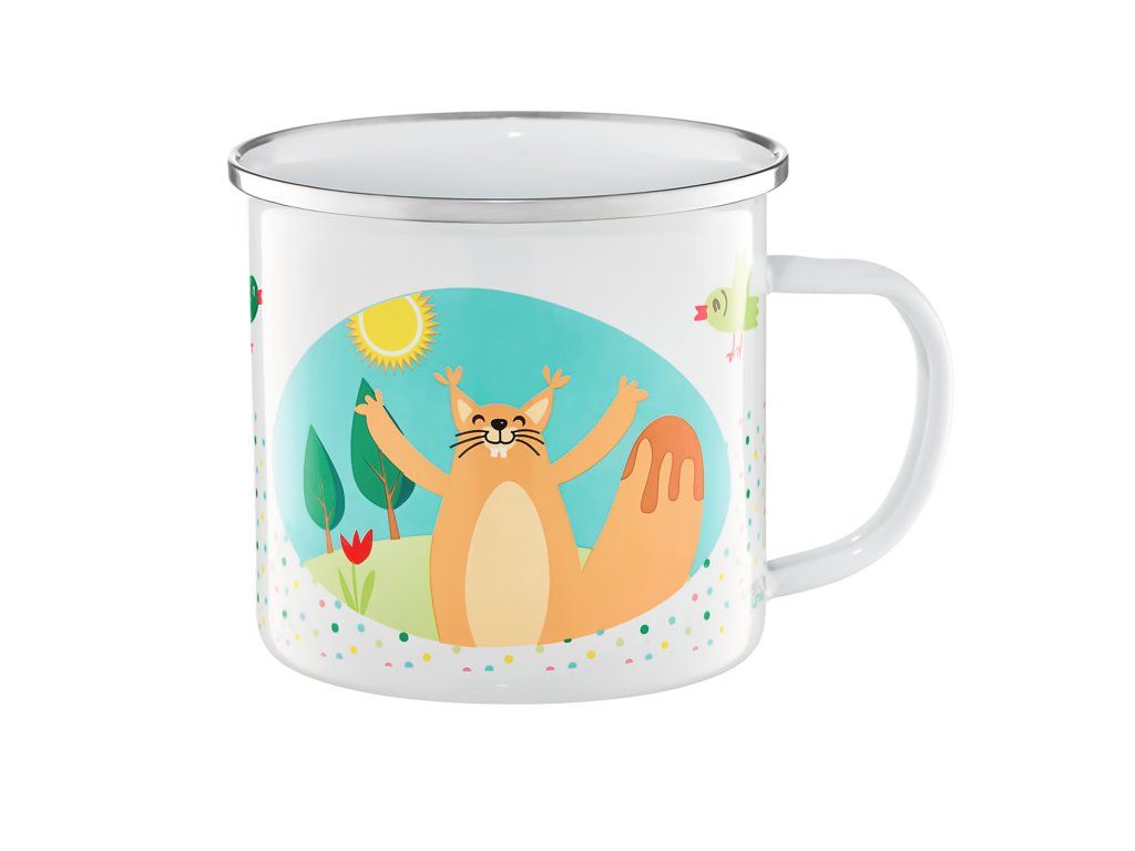Roztomilý hrnek s lesními kamarády Veverkou a Mývalem - zpříjemní snídani každému dítěti. Ideální velikost pro ohřívání mléka. Vyrobený z uhlíkové oceli se smaltovaným povlakem. Vyniká okovanou hranou, která chrání před otlaky. Vhodný do myčky a vhodný pro všechny typy sporáků. Nezbytný doplněk každého dítěte a dobrý tip na dárek.