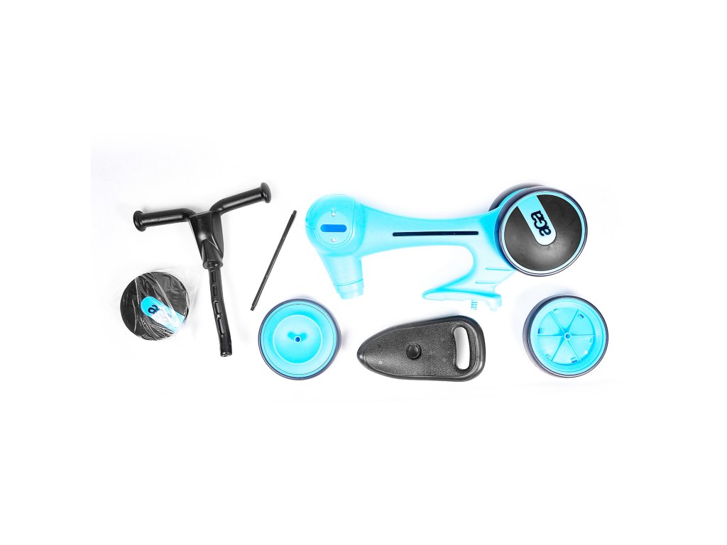 Odrážedlo je vyrobeno z odolného PP plastu, který zaručuje jeho pevnost a dlouhou životnost. Kola jsou plastová a potažená EVA pěnou, která zajišťuje tichý a plynulý pohyb po různých površích. Díky tomu můžete odrážedlo používat jak venku, tak i uvnitř domu. Odrážedlo je vybaveno čtyřmi koly, které zajišťují stabilitu.