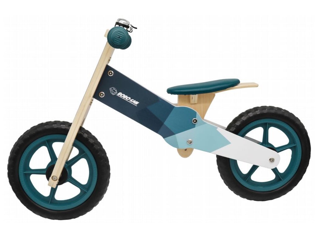 Dětské dřevěné odrážedlo, se zatáčecími řídítky, ergonomicky tvarovaným a výškově nastavitelným sedátkem.