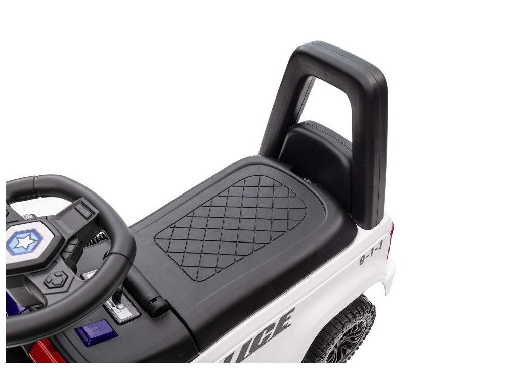 Odrážedlo POLICIE je stylová a funkční hračka, která rychle přinese radost dítěti a poskytuje mu příležitost k procvičení chůze. Bezpečná hračka, která zajistí pohyb Vašeho dítěte nejen venku, ale také doma. Volant, rukojeť, interaktivní volant a úschovný prostor, v kombinaci s originálním vzhledem automobilu zaručují úspěšný dárek a velkou zábavu.