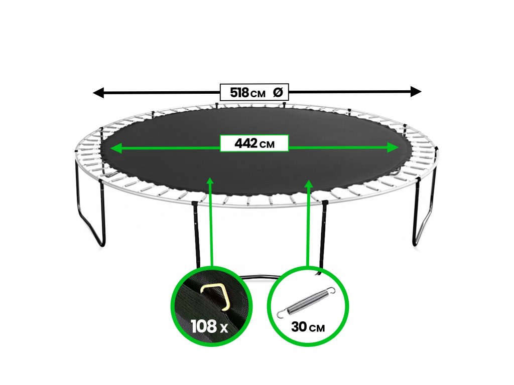 - Určeno pro trampolíny o průměru konstrukce: 518 cm