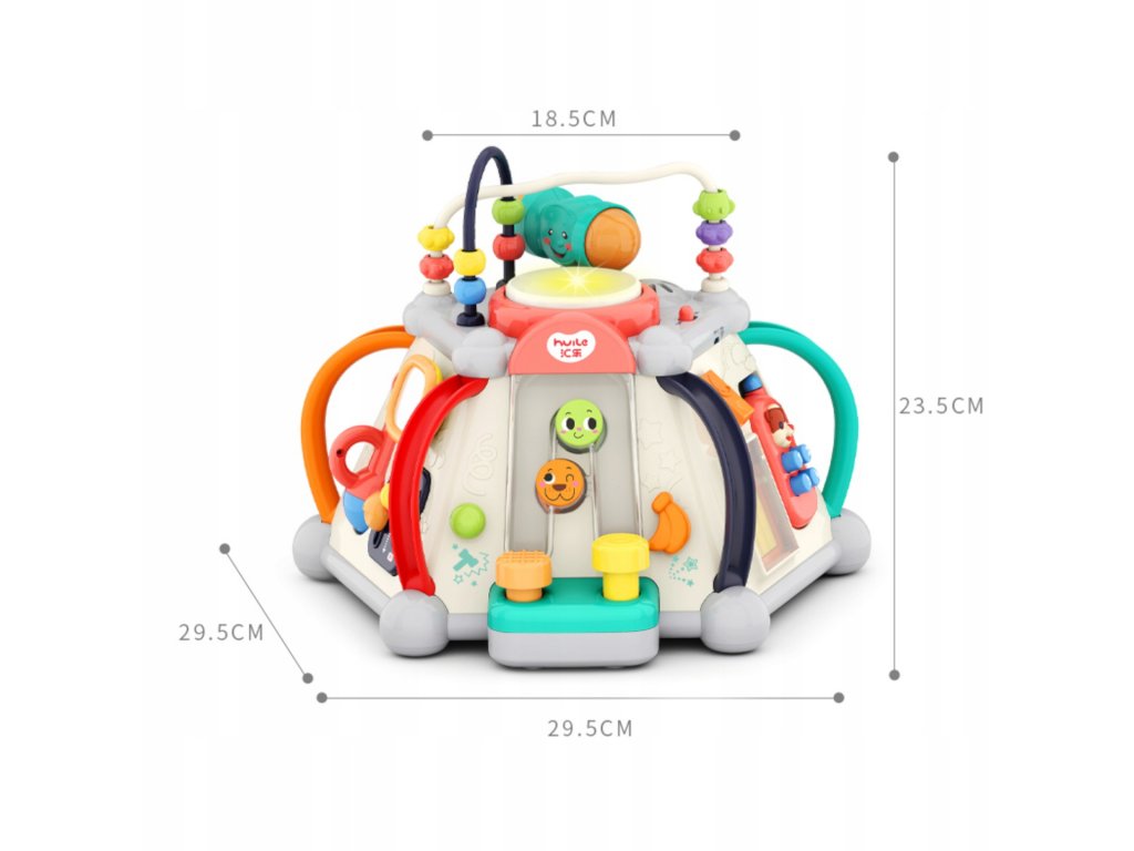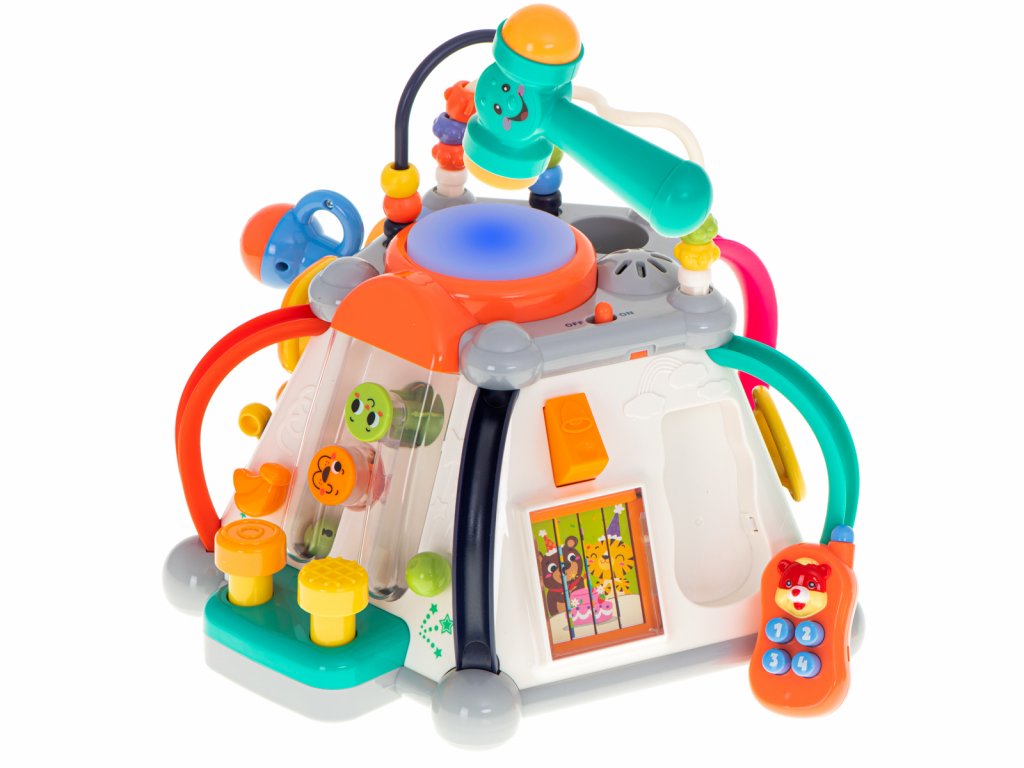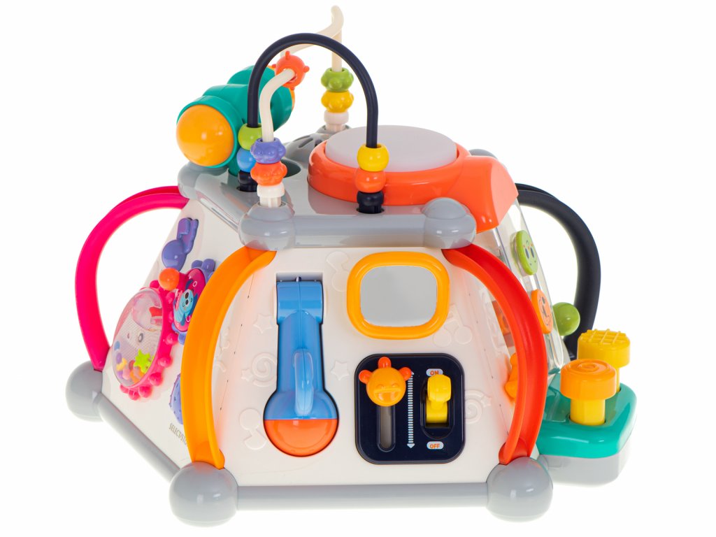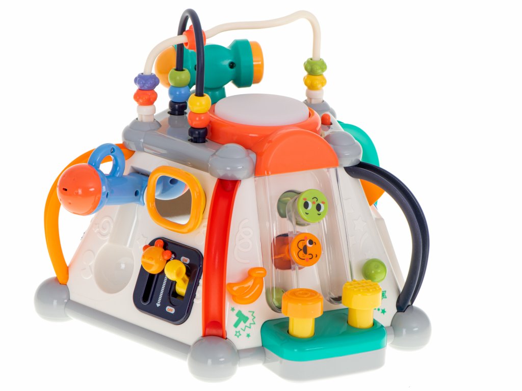 Nová interaktivní multifunkční kostka pro nejmenší – novinka roku 2021. 15 dynamických funkcí pro chytrou zábavu a interaktivní hraní. Tato hračka má interaktivní boky i horní část. Každá strana kostky nabízí jiný druh zábavy a nabízí tak dítěti nepřeberné množství využití. Pozitivně působí na celkový rozvoj dítěte.