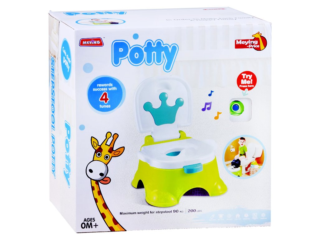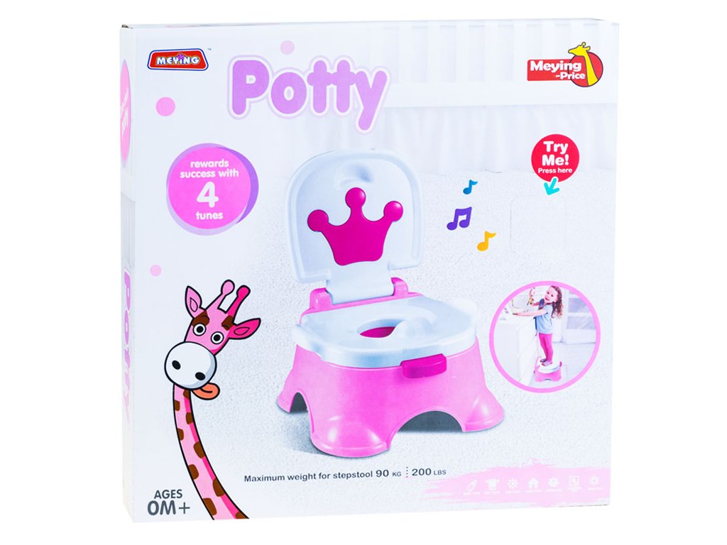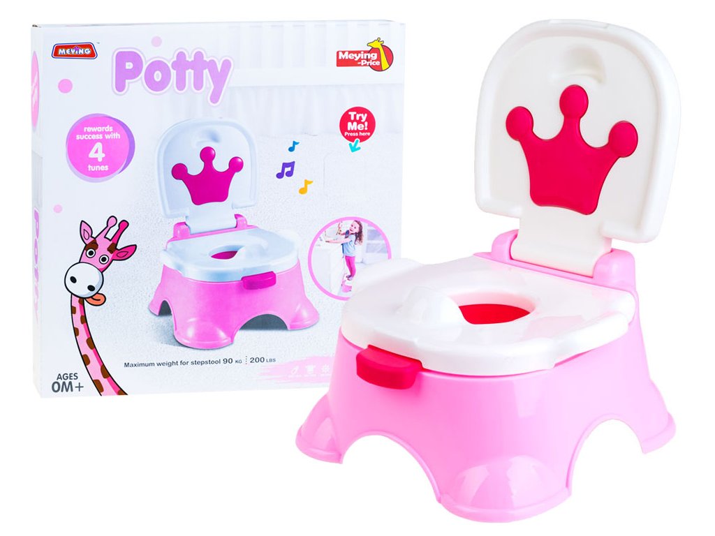 Skutečný nočník pro krále nebo královnu. Trůn s funkcí hraní veselé hudby, fanfárou, ovacemi a radostí po jeho použití. Skvělá zpráva pro rodiče, kteří chtějí své dítě odnaučit od plenek. Produkt lze užívat jako klasický nočník s poklopem a vyjímatelnou nádobkou nebo jako podstavec pro mytí. Nočník je stabilní a velmi snadno se udržuje v čistotě. Vyroben je ze zdravotně nezávadného plastu. Sestava 2v1 se bude hodit v každé koupelně.