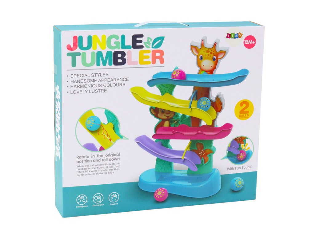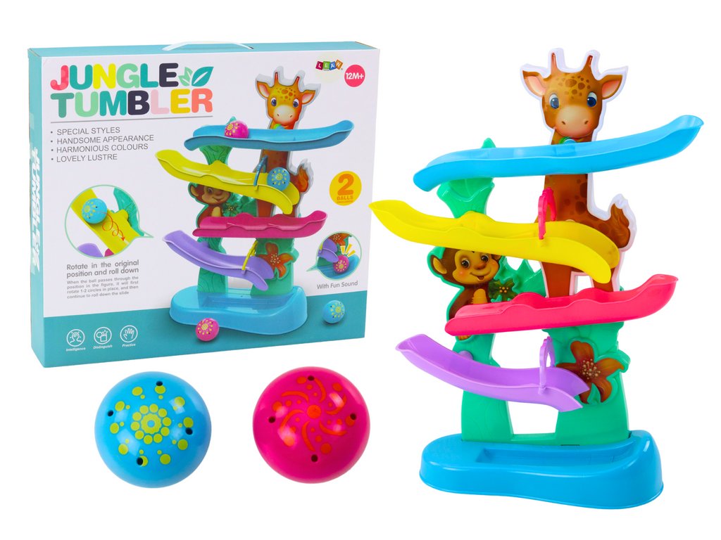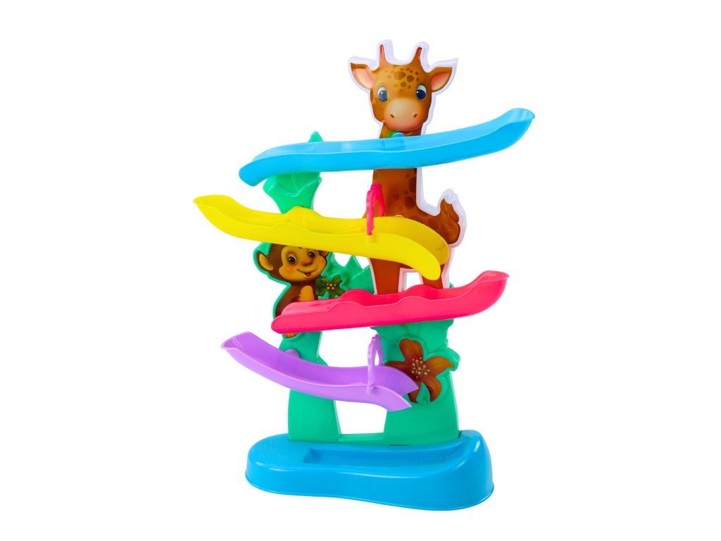 Skluzavka pro míčky s motivem žirafy a opice, barevná
