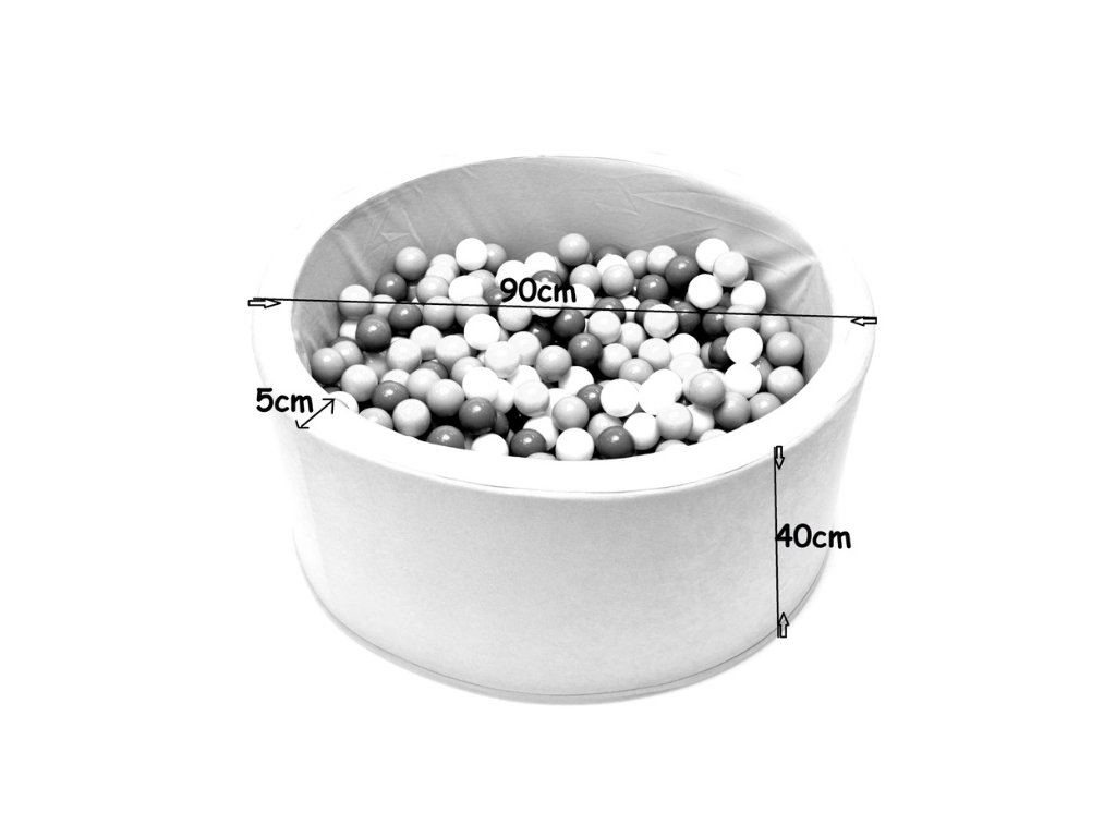 Máte doma dítě, které ani chvílku neposedí? Posaďte ho do tohoto roztomilého bazénku, ve kterém se dokáže skvěle vyhrát a zabavit. Stěny bazénku jsou vyplněny odolnou polyuretanovou pěnou, která je potažena látkou. V sadě s bazénem je 200 (Ø 7 cm) barevných míčků. Všechny použité materiály jsou nejvyšší kvality. Materiály jsou certifikované. Plastové kuličky pro suchý bazén jsou vyrobeny z netoxického materiálu, bezpečné pro děti, velmi flexibilní, nedeformovatelné, mají certifikát CE. Potah bazénku je díky všitému zipu odepínací a lze tak kdykoli sundat a vyprat.