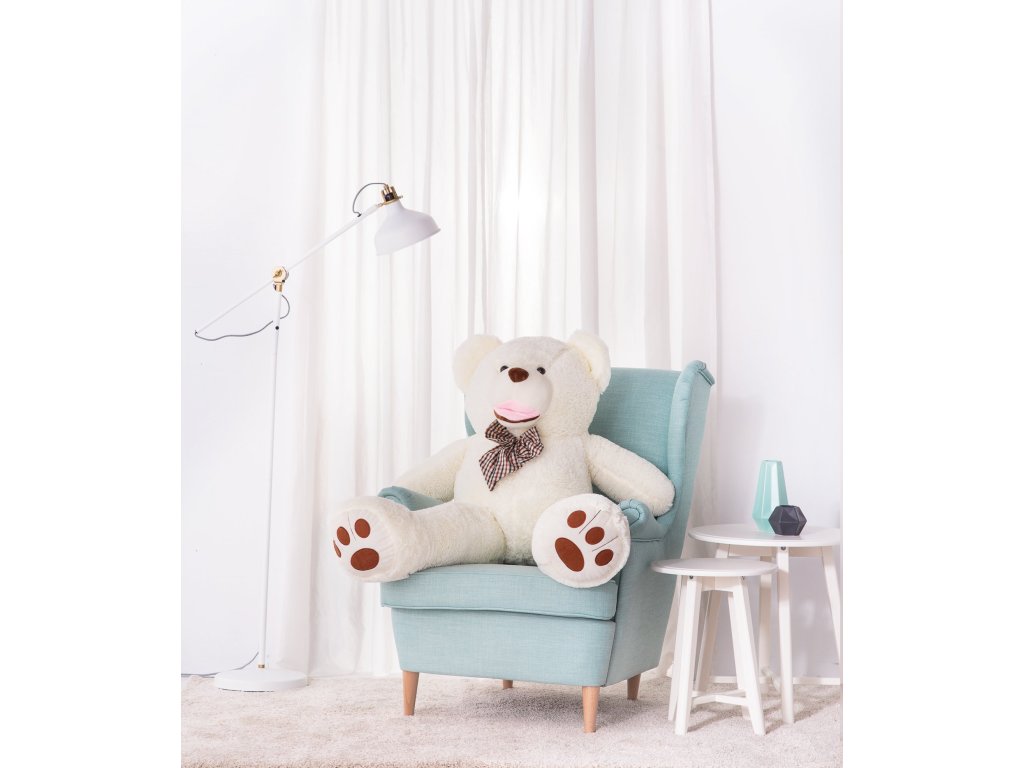 Plyšový medvídek je vysoký 140 cm (měřeno od nohou k hlavě). Jedná se o nový model, který je k dispozici pouze v našem eshopu nebo na naší provozovně. Medvídek má vyšívané tlapky a velké medvědí bříško. Tento medvěd je velmi dobře naplněn plyšovým materiálem a proto je tak mohutný.