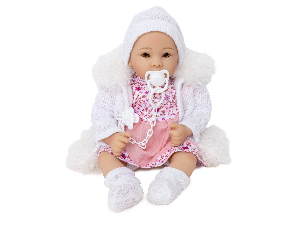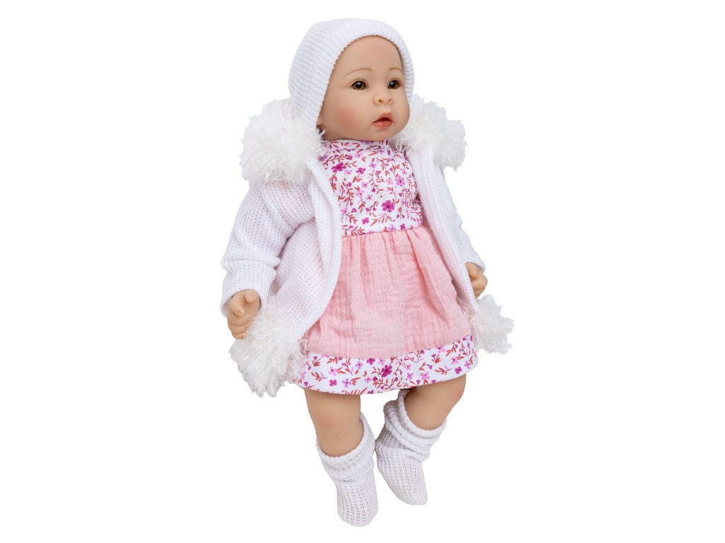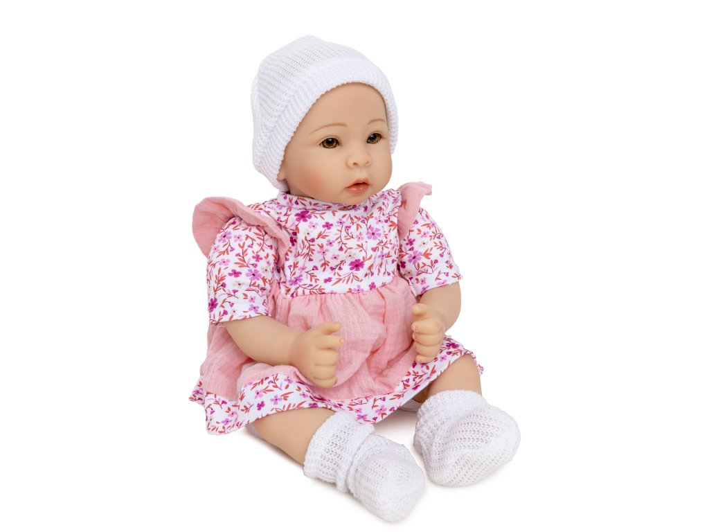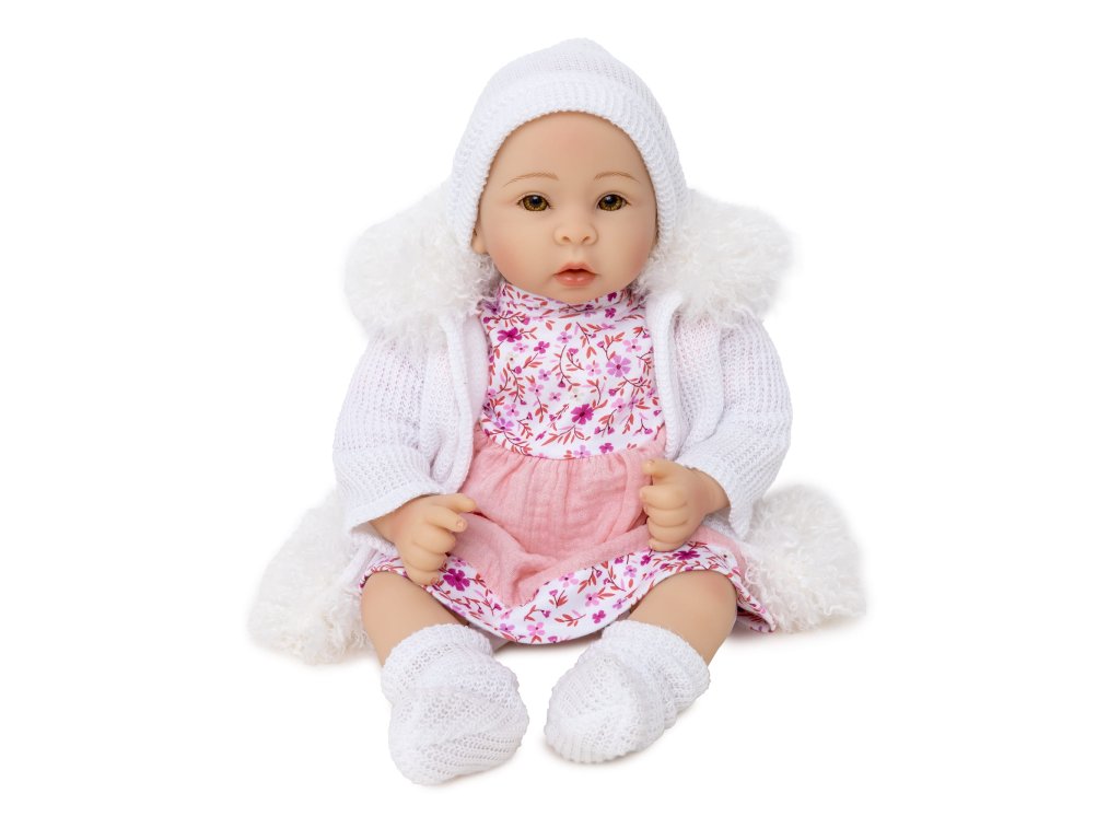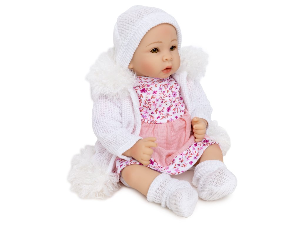 Krásná panenka s usměvavým obličejem vypadá jako skutečné dítě. Realistické zpracování skutečného sladkého dítěte. Panenka má veselý, sladký obličej a velké oči s dlouhými řasami. Panenka je vyrobena s velkou péči z velmi kvalitních materiálů. Oblečení lze snadno sundat a vyprat, aby se panenka snadno udržovala v čistotě. Hlava, paže a nohy jsu vyrobeny z měkké gumy, připevněné k plněnému měkkému trupu. Velikost panenky je asi 40 cm. Po stisknutí břicha zpívá panenky úseky písní. Panenka krásně voní a je zabalena v dekorativní barevné krabici, takže se ideální hodí jako dárek.