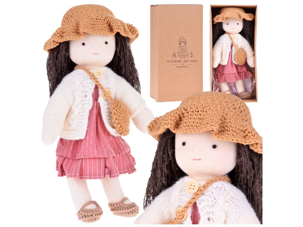 Tato Waldorfská panenka zaujme jemným, teplým vzhledem a jednoduchým designem. Minimalistická tvář s jemně naznačenýma očima a ústy podporuje dětskou představivost při vyjadřování emocí. Měkké tělo s zaoblenými tvary působí přátelsky a mazlivě. Oblečená je do růžových šatů, doplněných pleteným svetrem a čepicí, které jí dodávají unikátní a půvabný charakter. Dlouhé, jemné vlasy připomínají přirozenou texturu. Pastelové a tlumené barvy oblečení přidávají harmonický a klidný vzhled. Elegantní boty a pečlivě propracované detaily ukazují pozornost ke každému prvku, díky čemuž je panenka nejen skvělou hračkou, ale i pěknou dekorací do dětského pokoje.Panenka je ideální dárek pro děti všech věkových kategorií a stane se symbolem péče a lásky, její nadčasový půvab zajišťuje, že bude milovanou společníčkou na mnoho let. Balení: elegantní kartonová krabička, připravená jako promyšlený dárek.