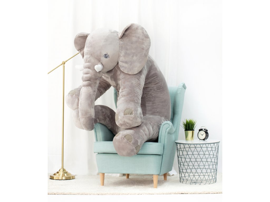 Velký plyšový Slon 155 cm. Jedná se o nový model, který je k dispozici pouze v našem eshopu nebo na naší provozovně. Tento plyšový slon je velmi dobře naplněný plyšovým materiálem a proto je tak mohutný.