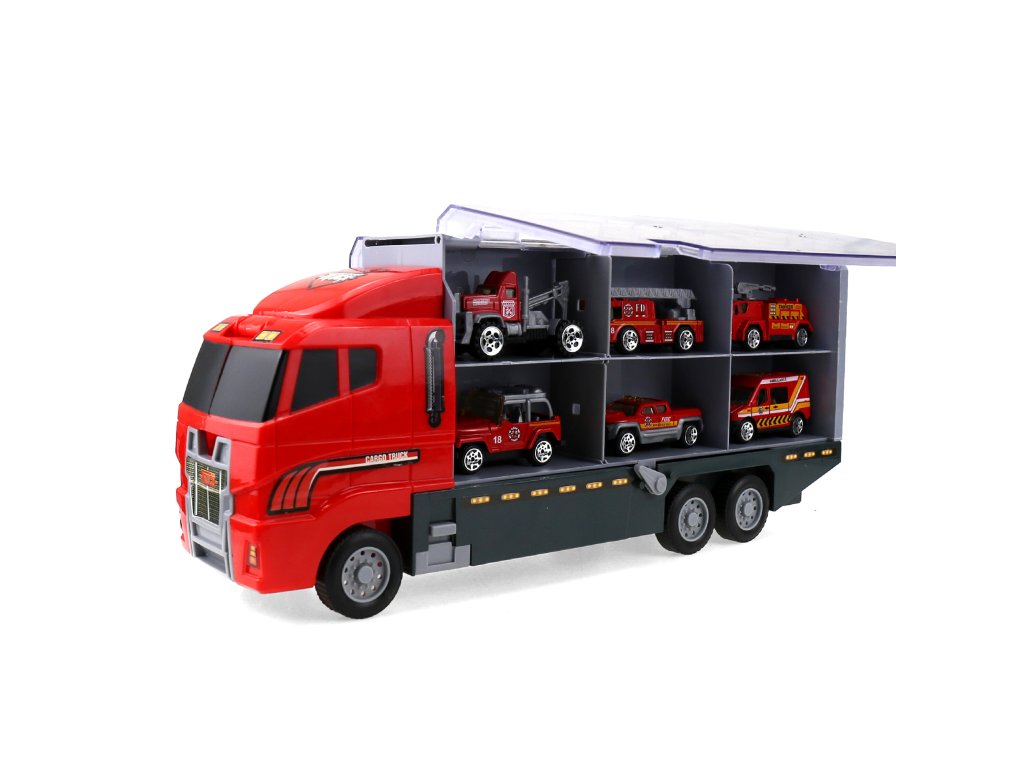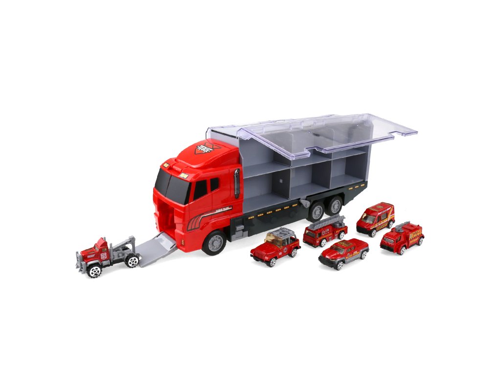 S tímto transportním vozidlem můžete svoji sadu hasičských autíček vzít s sebou!