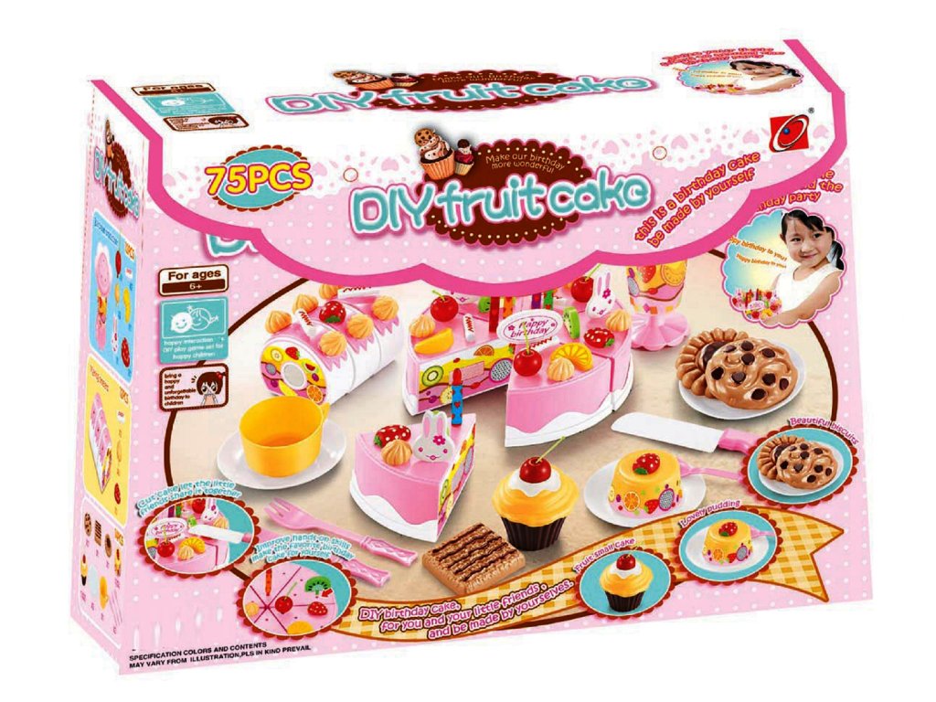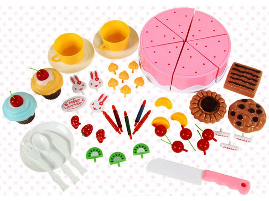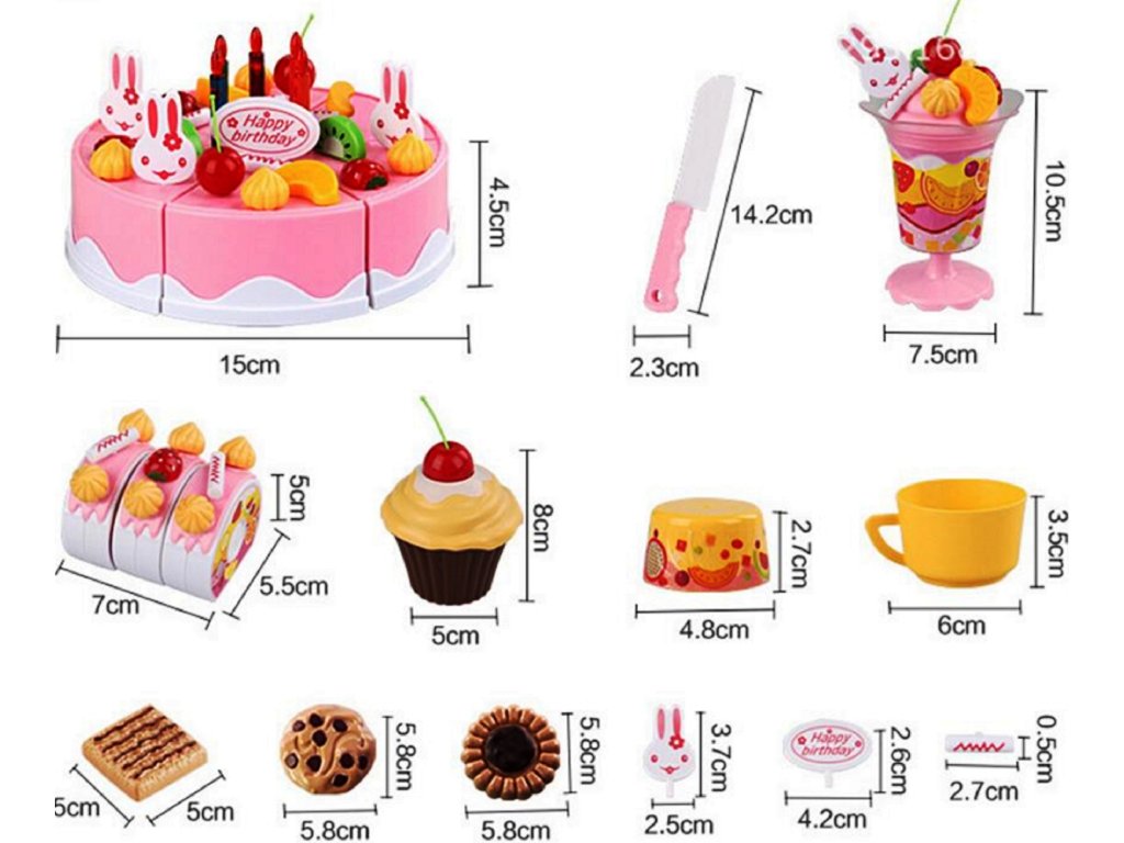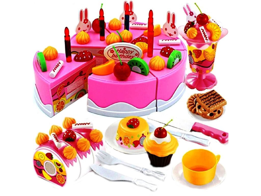 Narozeninový dort na krájení se svíčkami pro Vaše výročí. Velká sada obsahuje až 75 prvků, dort se skládá ze 37 prvků, pohár na zmrzlinu se skládá ze 12 prvků, roláda se skládá ze 12 prvků a navíc ještě obsahuje sada 14 prvků. Darujte svému dítěti dort, který bude použit pro zábavu. Kousky dortu jsou se suchým zipem, díky kterému může dojít ke krájení dortu. Dort je navíc zabalen v sáčku, který napodobuje dárek.