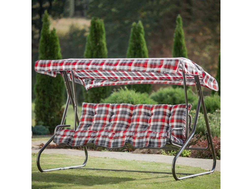 Sada sedáků na houpačku Milano se skládá ze dvou sedáků a stříšky. Výplň sedáků: řezaná houbička Flocke o tloušťce 8-10 cm. Tkanina: vrch sedáků z bavlněno - polyesterové tkaniny, spodek z polyuretanu. Lem je obšitý polyesterem, v ohbí jsou šňůrky pro upevnění k rámu. Stříška je ze stejné tkaniny a ve stejném vzoru jako sedáky.