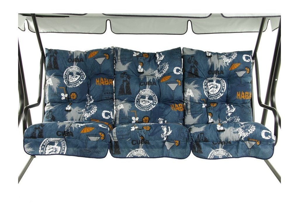 Sada sedáků na houpačku Monte Carlo zaijšťuje pohodlí při používání houpačky. Vysoce kvalitní 3 sedáky z Lonety, zdobený polyesterovým lemováním, popruhy pro připevnění. Každý polštář je prošívaný (4x opěradlo, 2 x sedadlo). Vyplnění sedáků je řezanou houbičkou Flocke. Látka Loneta je tlustá, neztrácí se, nekroutí se, potisknutá látka. Vysoký obsah bavlny – 75 %, velmi dobrá kvalita.