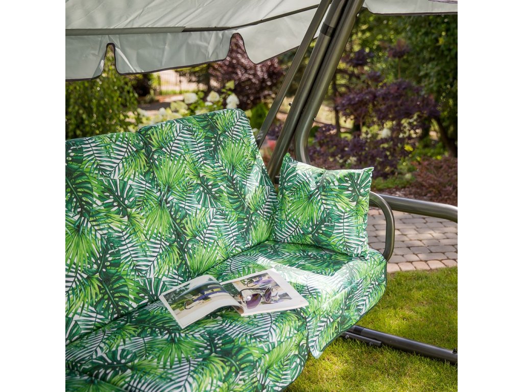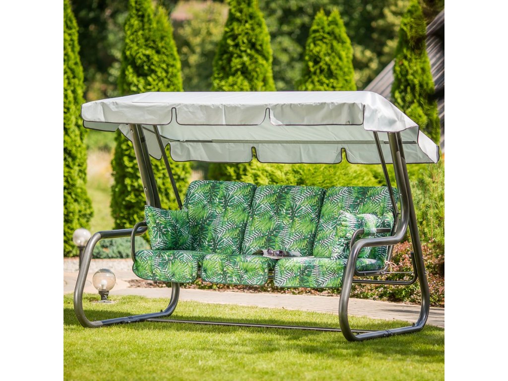 Pro příjemný odpočinek na Vaší houpačce Vám nabízíme vysoce kvalitní sadu sedáků na houpačku Rimini/Venezia. V sadě jsou 3 sedáky vyplněné polyuretanovou pěnou, která je zabalena do potahu z polyesteru. Tkanina: vrch i spodek ze 100 % polyesteru. Obšito lemem z polyesteru. V ohbí šňůrky pro připevnění k rámu. K sadě patří také 2 područky, které jsou vybaveny suchým zipem pro upevnění k rámu. Povlaky sedáků jsou vybaveny zipsem, takže je můžete sundat a vyprat !!