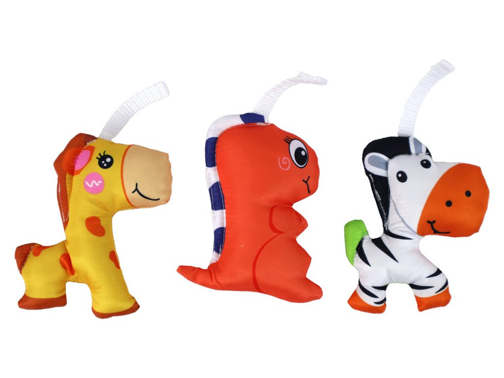 - 3 plyšové přívěsky (zebra, žirafa, dinosaurus)