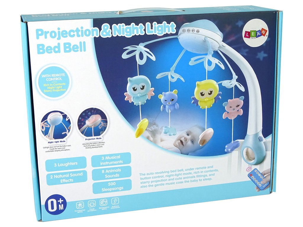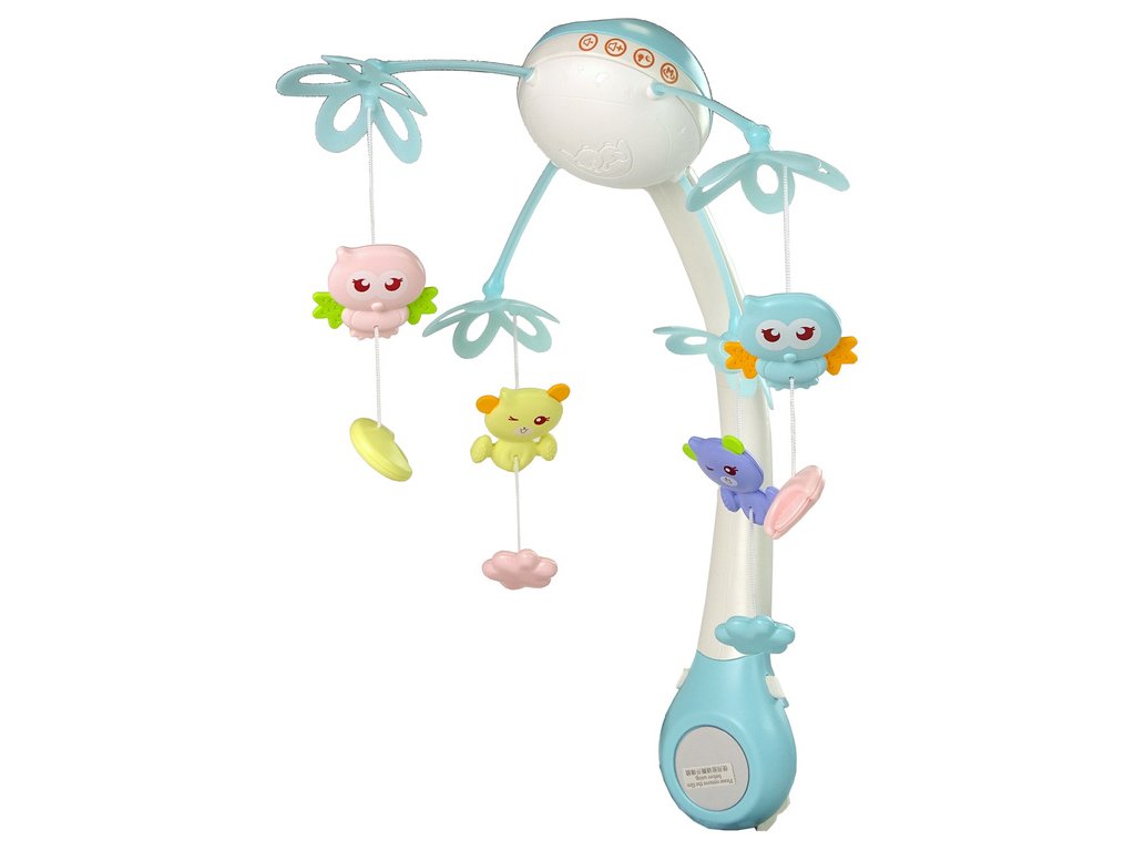 Barevné hvězdičky a přívěsky ve tvaru přátelských ptáčků a plyšových medvídků zaujmou vaše dítě, které začne natahovat ručičky a chytat se zavěšených předmětů. Učí se texturu a tvar přívěsku a zároveň rozvíjejí svalovou sílu. Boční části jsou vyrobeny z měkké, netoxické gumy a lze je použít jako kousátko. Pečujte o vývoj svého dítěte již od útlého věku. Kolotoč lze připevnit k dětské postýlce a při procházce ke kočárku (jednoduše oddělte kolotoč od projektoru a připevněte ho ke stříšce kočárku). Obraz vyzařovaný projektorem přitahuje pozornost dítěte. Kolotoč má ovládání hlasitosti. Díky nastavitelné rukojeti se kolotoč hodí do většiny lamelových postelí. Na spodní straně zařízení je zrcátko, ve kterém se dítě může dívat na sebe. Celé se ovládá dálkovým ovladačem, kterým se nastavuje osvětlení, hlasitost a zvuky.