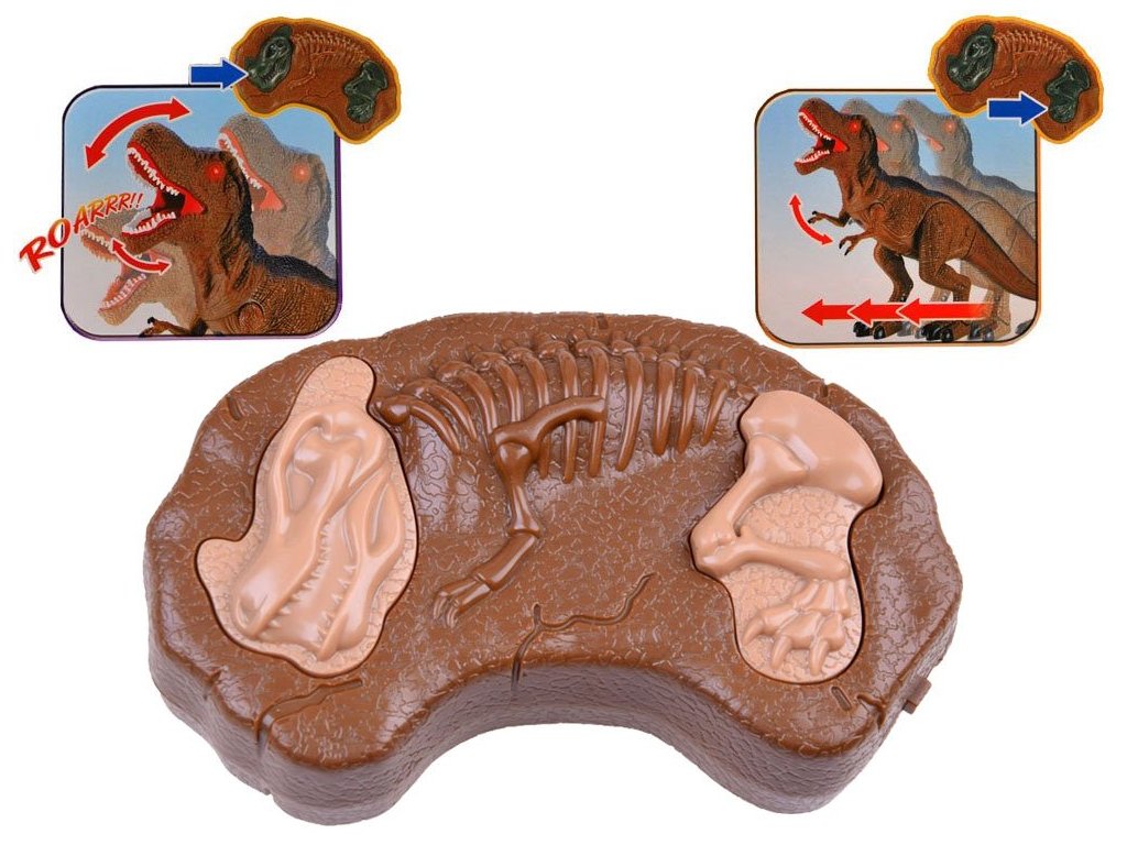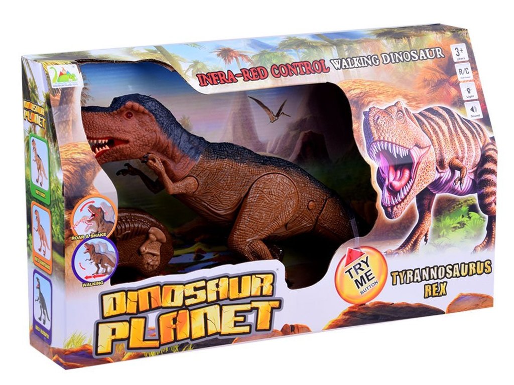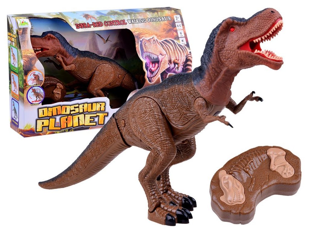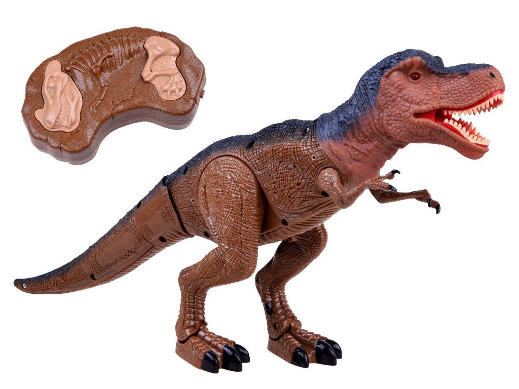Interaktivní dinosaurus T-Rex řízený dálkovým ovládáním. Stane se výzvou pro každého fanouška těchto tvorů. Tyranosaurus Rex, jeden z největších pozemních predátorů, ovládaný dálkovým ovládáním se zvukovými a světelnými efekty, poskytne spoustu zábavy pro každé dítě. Dinosaurus ovládaný dálkovým ovládáním najde pravděpodobně v očích nejen malé chlapce. Ovladač se dvěma tlačítky uvede dinosaura do pohybu a poté vydá charakteristický zvuk těžkých kroků přicházejícího dinosaura, T-Rex se pomalu pohybuje vpřed. Druhé tlačítko uvádí do pohybu dinosaurovu hlavu a ústa, doprovázené velmi realistickým řevem. Další výhodou této hračky je senzační světelný efekt, který prohlubuje zážitek při hraní s dinosaurem.
