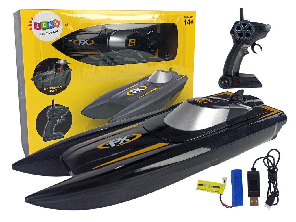 RC modely jsou nejoblíbenější volbou pro malé automobilové průzkumníky. Většina z nich jezdí na souši, ale máme pro vás tip: dálkově ovládaný člun, který vám umožní pohybovat se po vodě. Ideální pro výlet k vodě nebo k bazénu. Zábava bude nekonečná. Tento dálkově ovládaný motorový člun má speciální design, který zabraňuje vniknutí vody dovnitř. Elegantní design a aerodynamický tvar motorového člunu jsou poutavé. Je ideální pro vodní závody! Vysílá na frekvenci 2,4 GHz, což nebrání ovládání dvou vozidel. Má dva nezávislé motory, díky čemuž je hbitý, rychlý a spolehlivý. Dálkové ovládání je pohodlné, perfektně padne do rukou a nabízí ovládání vpřed, vzad a ze strany na stranu. Ideální pro výlet k vodě nebo k jezeru, vezměte si tento člun s sebou! Není pochyb o tom, že z tohoto modelu budou nadšeni chlapci i dívky, stejně jako jejich rodiče! Loď používá 3,7V/650 mAh baterie a dálkové ovládání používá 2 x 1,5V AA baterie. Baterie lodi by měly být umístěny pod palubou – otvor je chytře skryt za panelem, kde se nachází řidič a spolujezdec. Vhodné pro děti starší 14 let.