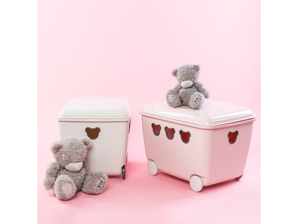 Jak nejlépe uložit hračky a poklady vašeho dítěte? S naším úložným boxem je to tak jednoduché. Tento půvabný doplněk dětského pokoje je nejen místem na autíčka, plyšové hračky či kostky, ale také krásnou dekorací. Je vyrobený z nejkvalitnějšího plastu, je odolný a bezpečný. Prolamované otvory v podobě medvídků jsou perfektním akcentem a promyšlený design s víkem zajistí, že všechny hračky zůstanou na svém místě. Boxy lze navíc postavit na sebe, takže je využijete i na malém prostoru. Box má kolečka, takže dítě může snadno přemisťovat hračky z jednoho místa na druhé. Organizace hraček nikdy nebyla tak jednoduchá a estetická.