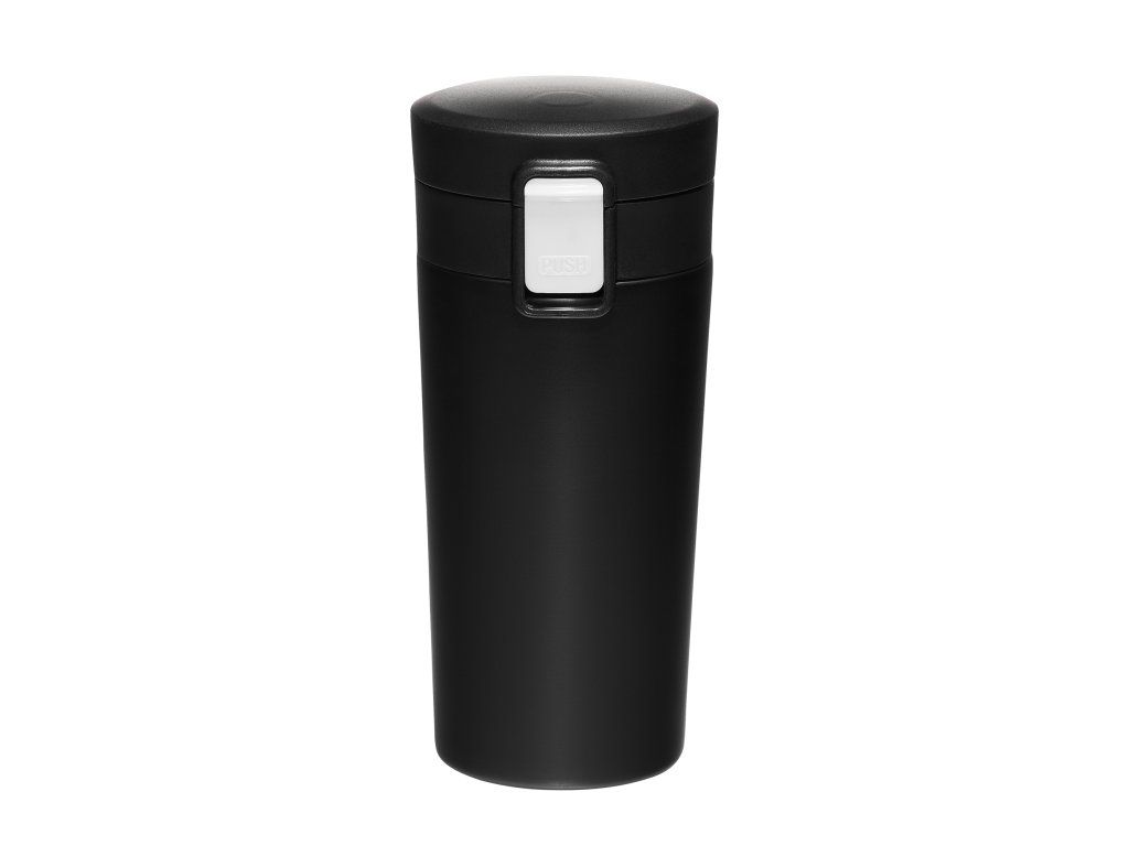 Černý termohrnek Spark je spolehlivým každodenním společníkem - je vhodný na procházku, do práce i na cesty. Díky lehkému designu a ergonomickému tvaru se pohodlně drží a díky kompaktní velikosti se snadno skladuje. Hrnek je vybaven praktickým tlačítkem s blokací, které umožňuje snadné otevření jedním stisknutím. Je výbornou volbou pro udržení teploty vašich oblíbených nápojů, jak teplých, tak studených, a díky speciálnímu designu zůstává vnější část vždy chladná na dotek, což zajišťuje pohodlí při používání.
