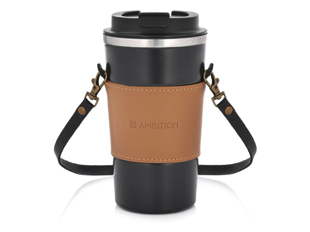 Termohrnek Camel od Ambition v hnědo-černém barevném provedení vám umožní si kdykoliv vychutnat horký šálek kávy. Díky matnému povrchu, hnědému pásu z umělé kůže a praktickému ramennímu popruhu se stane nepostradatelným společníkem na cestách – do práce, do školy nebo jen na procházku po městě. Korpus z nerezové oceli zajišťuje odolnost proti poškození, zatímco víko se systémem zacvaknutí zabraňuje rozlití nápoje. Termohrnek udržuje teplotu teplých i studených nápojů, takže si můžete vychutnat svou oblíbenou kávu nebo osvěžující limonádu kdykoli během dne. Všestranné barvy a praktický design z něj činí nejen praktický doplňek, ale také skvělý tip na dárek.