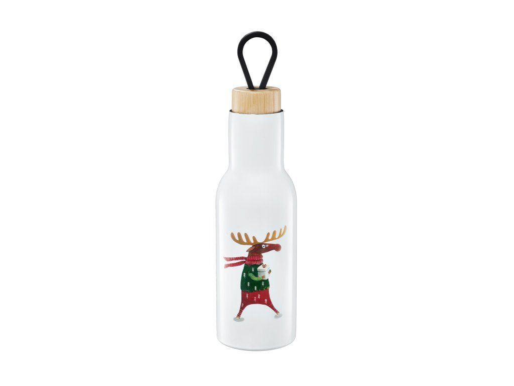 Láhev se zimním motivem je nutností v zimní sezóně a také dobrý tip na dárek. Náladu v mrazivém dni vám zlepší teplý nápoj, horký čaj nebo lahodné kakao. Nápoj si můžete vzít všude, do školy nebo na procházku. Láhev má roztomilý motiv losa a vánočního stromku. Vyrobeno z nerezové oceli. Láhev má dřevěný korkový uzávěr a silikonové poutko. Celkový objem po okraj je 400 ml.