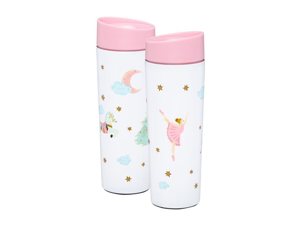 Růžový termohrnek z kolekce Ballet je dokonalou kombinací funkčnosti a vánočního kouzla. Tento termohrnek, inspirovaný slavným baletem "Louskáček", nás zavede do pohádkového světa pastelových barev. Motiv vánočního stromku, baletky a osedlaného koně obklopených hvězdami vytváří hřejivou, sváteční atmosféru. Termohrnek je vyrobený z nerezové oceli a je vakuově izolovaný, což zajišťuje dlouhodobé udržení teploty vašich oblíbených nápojů - teplých i studených. Je lehký, šikovný a snadno se přenáší, takže ho můžete mít vždy po ruce, bez ohledu na příležitost.