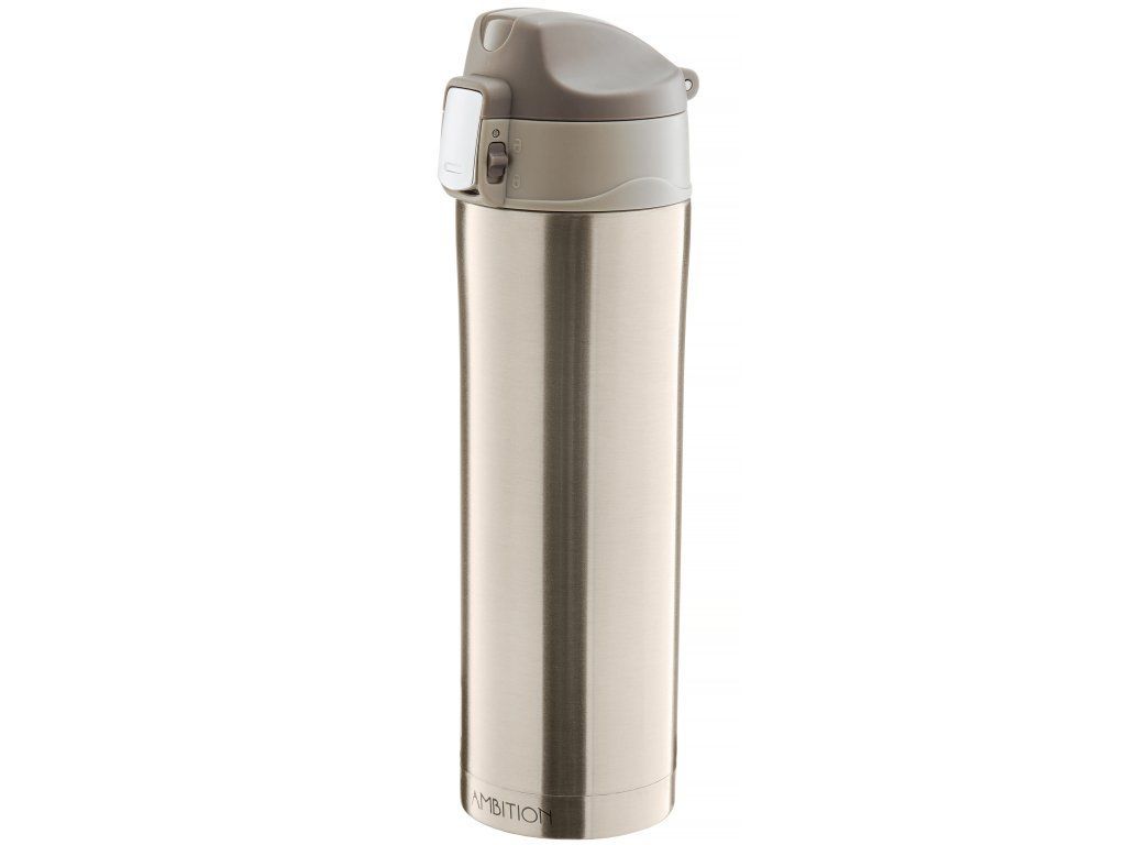 Termohrnek Glossy značky Ambition je vybavený dvojitou stěnou a vložkou z nerezové oceli, což zaručuje větší ochranu před ztrátou teploty nápoje. Dále je vybavený blokací, která chrání před nechtěným otevřením a rozlitím. Vyprofilovaný náustek usnadňuje použití. Hrnek je vhodný do školy, do práce i na výlety a můžete ho využít jak na teplé tak studené nápoje. Elegantní vzhled. Celkový objem: 420 ml Užitkový objem: 400 mlTechnické parametry: