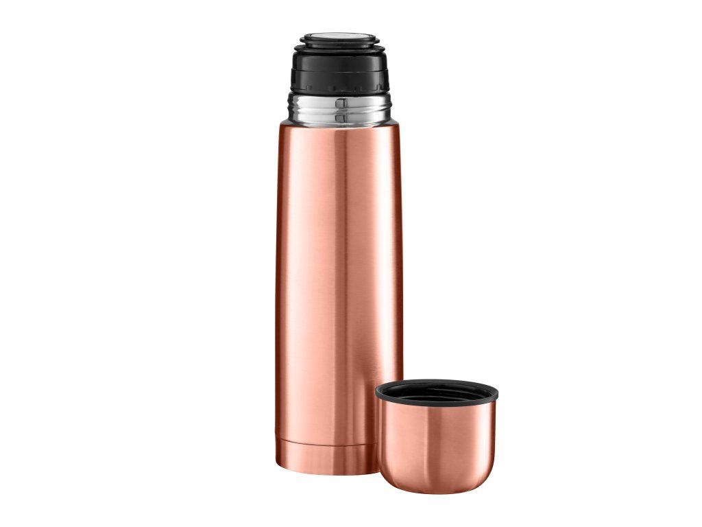 Elegantní termos na kávu a čaj v barvě růžového zlata splní vaše očekávání. Díky dvojité vakuové izolaci udrží termos nápoje horké či studené po dlouhou dobu, díky čemuž se skvěle hodí na dlouhé procházky, na výlety nebo do práce. Je vyroben z odolné nerezové oceli odolné proti poškození. Pevný uzávěr zaručuje bezpečnost proti úniku nápojů a díky lehkému designu a ergonomickému tvaru se termos pohodlně používá a snadno se skladuje.