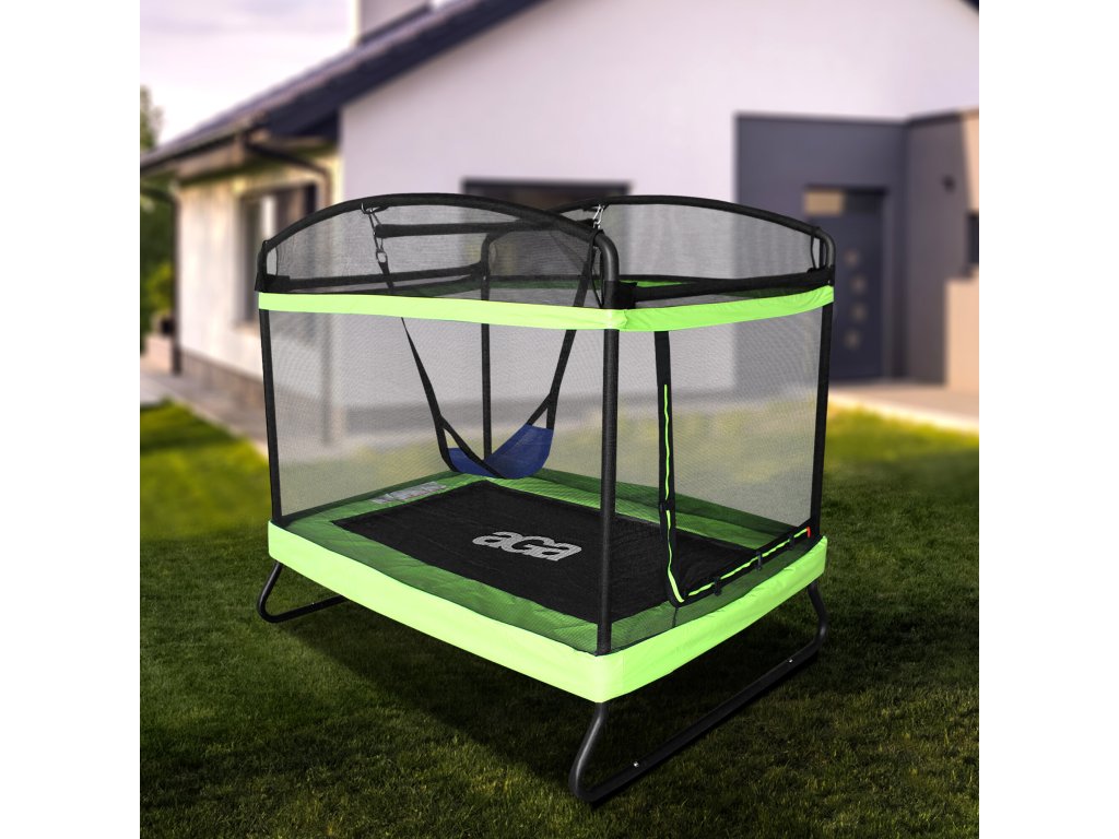 Dětská obdélníková trampolína je vybavena houpačkou. Umožňuje tedy vašemu dítěti nejen skákat, ale také se houpat.