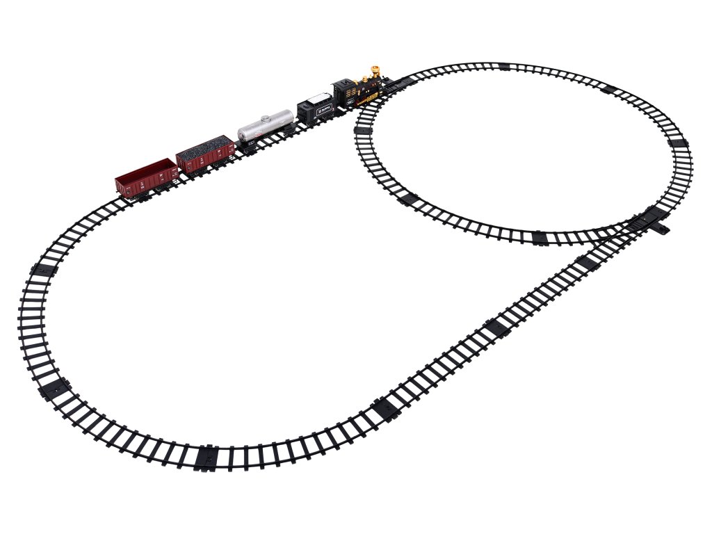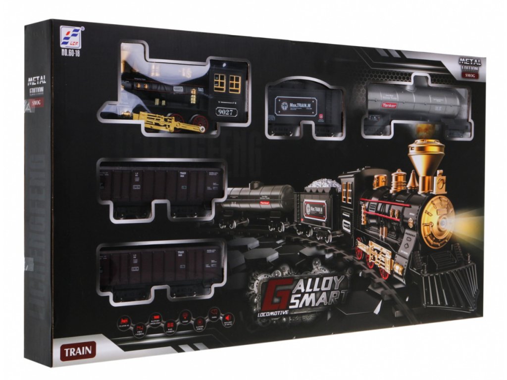 Nádherný vláček s realistickou funkcí kouře a zvuky jízdy, vhodný pro děti od 5 let. Součástí je akumulátor 3,7 V, který se vkládá do lokomotivy. Kolejiště tvoří elipsa s vnitřním okruhem o rozměrech 213 × 106 cm. Během jízdy lokomotiva po doplnění vody pomocí pipetky vypouští kouř z komína, přední světlo se rozsvítí a snadno spojovatelné koleje zajišťují bezpečné a odolné používání.
