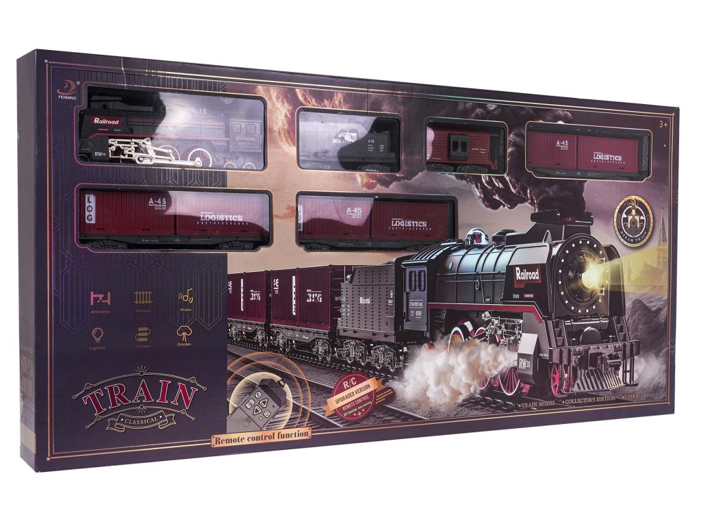 Retro vláčkodráha s funkcí kouře, zvuky a kompletními kolejemi je určena pro děti od 3 let. Lokomotiva je napájena akumulátorem 3,7 V (součást balení) a vydává kouř z komína a po stranách, přední reflektor svítí a hraje zvuky jízdy. Dálkový ovladač, který je součástí jednoho z vagónů, je napájen 2× AA bateriemi (není součástí). Koleje mají snadný systém spojování, který zaručuje bezpečné a odolné používání.