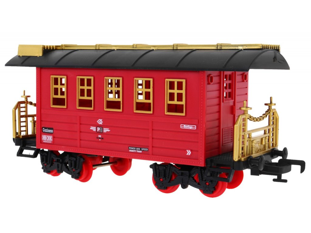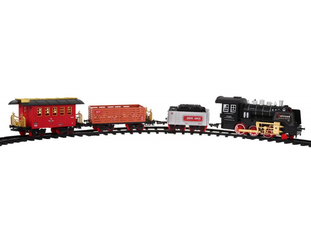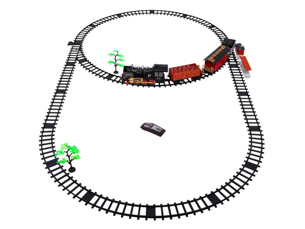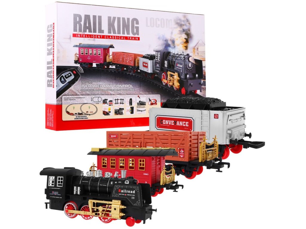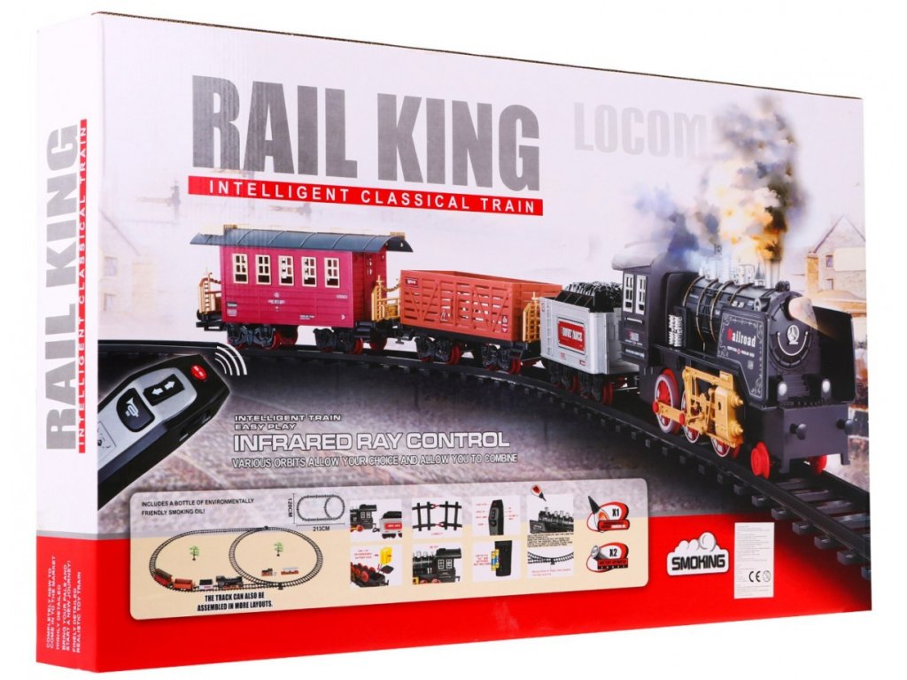 Představujeme velkolepou železniční soupravu, která zaujme hustým kouřem z komína, světelnými efekty a realistickými zvuky – zrychlování, zpomalování i troubení. Hračka podporuje rozvoj fantazie a motoriky. Lokomotiva, vagony i koleje jsou vyrobeny z kvalitního plastu s dlouhou životností a koleje mají snadný systém spojování. Lokomotiva je napájena akumulátorem 7,2 V + 2× AA do ovladače (nejsou součástí), ovladač pracuje na infračerveném signálu. Součástí balení je USB kabel. Souprava je určena pro děti od 3 let a splňuje CE certifikaci. Balení typu „kufřík“ je ideální jako dárek.