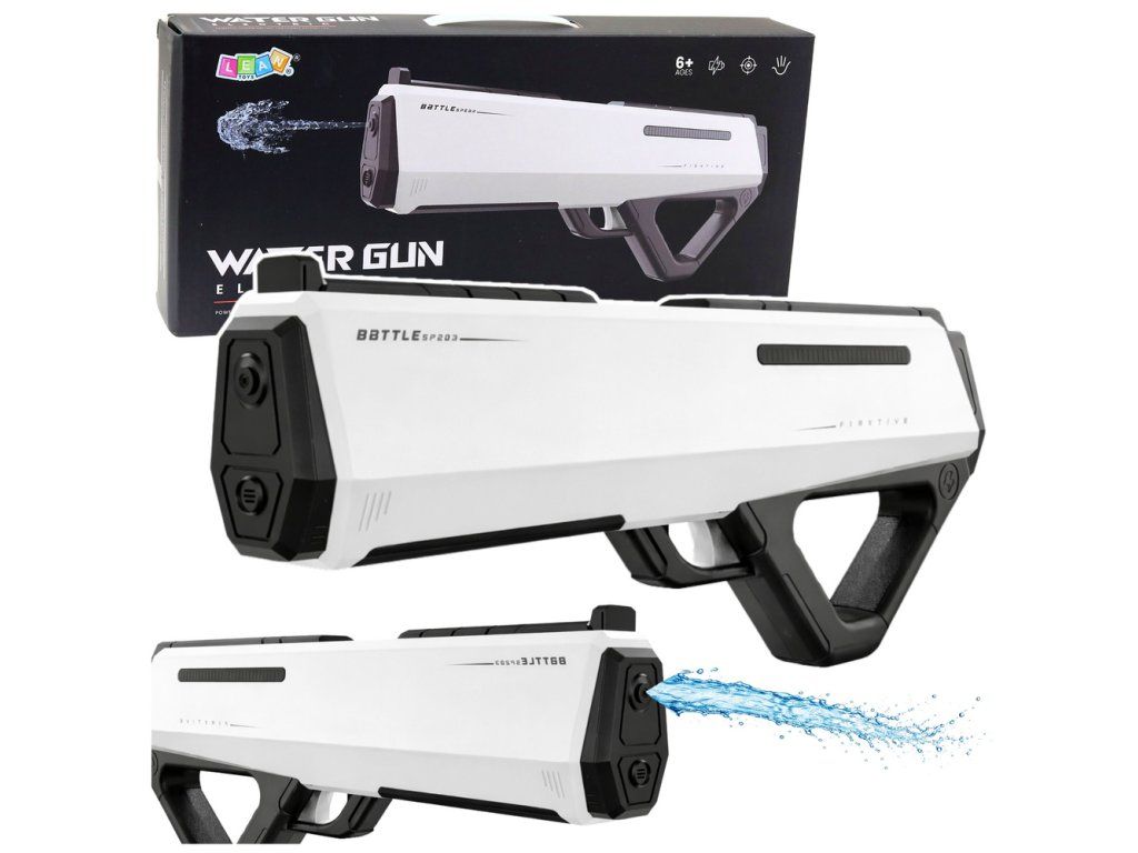 Připravte se na nezapomenutelné letní dobrodružství s touto moderní elektrickou vodní pistolí! Ideální pro intenzivní a dynamickou venkovní zábavu, ať už na zahradě, u bazénu nebo na pláži. Její futuristický design v elegantní bílo-černé kombinaci okamžitě upoutá pozornost a podtrhne styl každého malého bojovníka. Díky kompaktní a ergonomické konstrukci padne skvěle do ruky, což zajišťuje pohodlí a precizní ovládání i během těch nejdivočejších vodních bitev.
