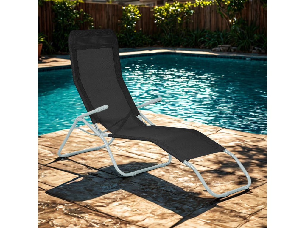 Polohovací lehátko Siesta s područkami je praktickým moderním zahradním nábytkem, ideálním pro pohodlnou relaxaci na jakékoliv zahradě.