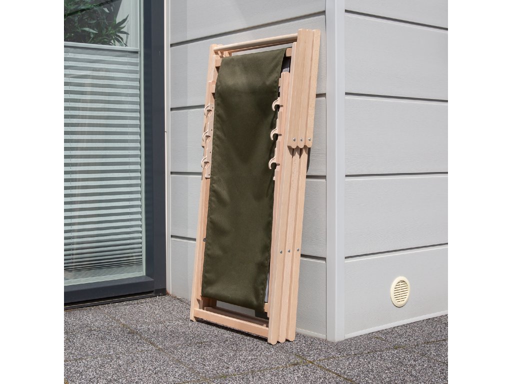 Praktické zahradní lehátko v khaki barvě. Objevte dokonalý způsob relaxace s dřevěným plážovým lehátkem v módní khaki barvě. Toto stylové a funkční lehátko je perfektním doplňkem každého výletu na pláž. Díky nízké hmotnosti a snadnému rozložení a složení je nejen snadno přenosné, ale také kdykoli připraveno k použití. Zaoblené prvky a pečlivě obroušené dřevo zabraňují riziku zranění a možnost nastavení opěradla do 3 poloh umožňuje dokonale přizpůsobit polohu vašim potřebám. Vyměnitelné sedadlo usnadňuje údržbu a umožňuje rychlou změnu vzhledu lehátka.